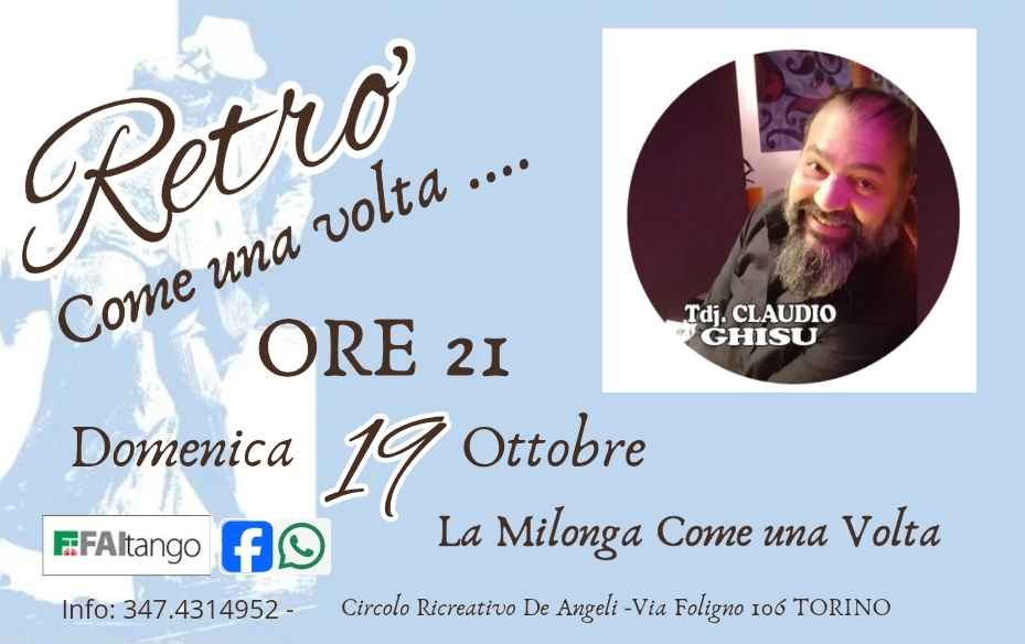 Domenica 19 Ottobre ospite come Tdj Cladio Ghisu , contributo stage + milonga 15€ e 8€ solo milonga.