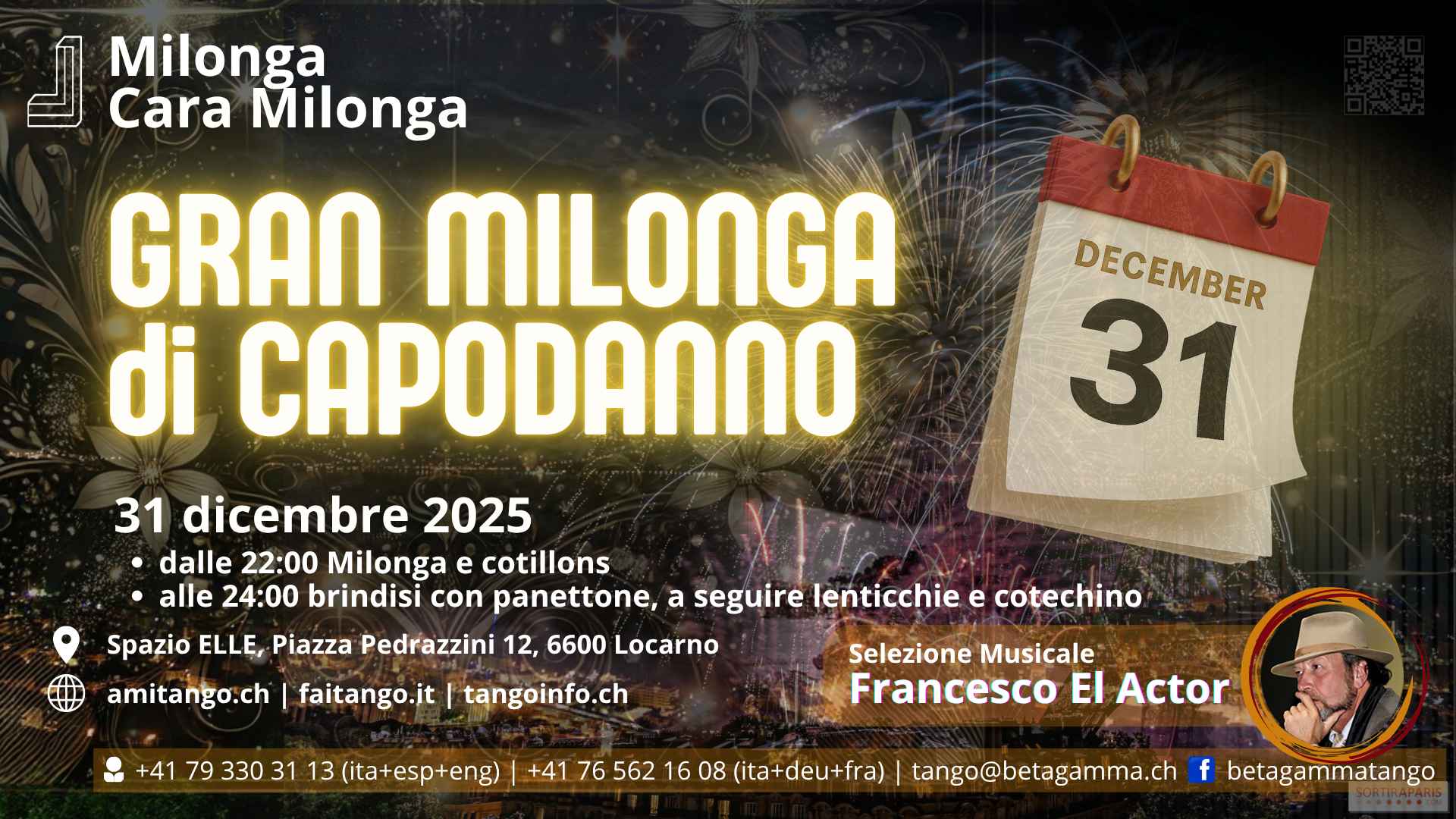 Milonga cara milonga di Capodanno con ricchi premi e cotillons.