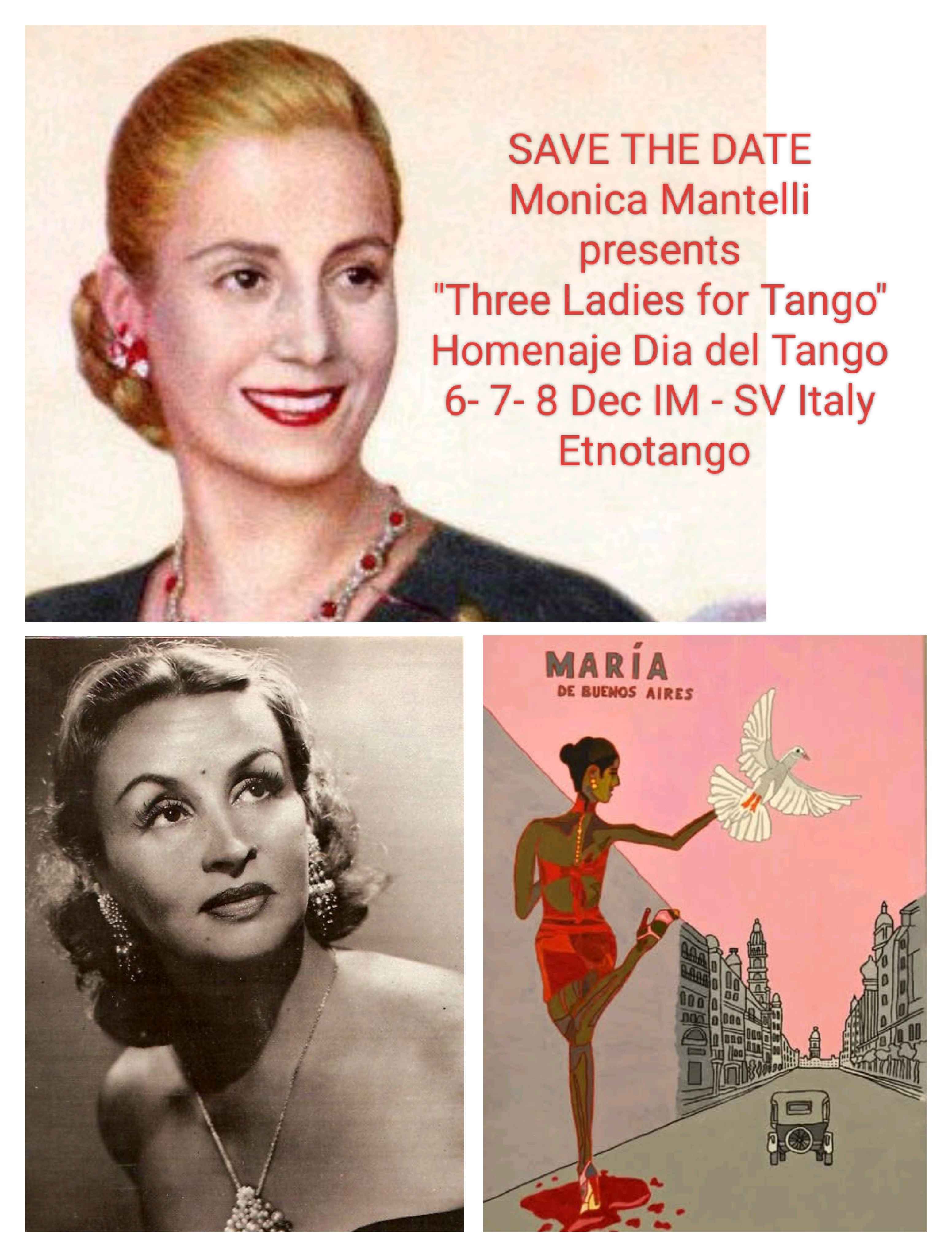 Monica N. Mantelli presents "three Ladies for Tango" homenaje por el Dia del Tango 2025. 3 days event in 3 different locations 6/12 - 7/12 - 8 December, Northern Italy western Riviera Ligure (Im - Sv) Organization: Casa de Tango by Etnotango.