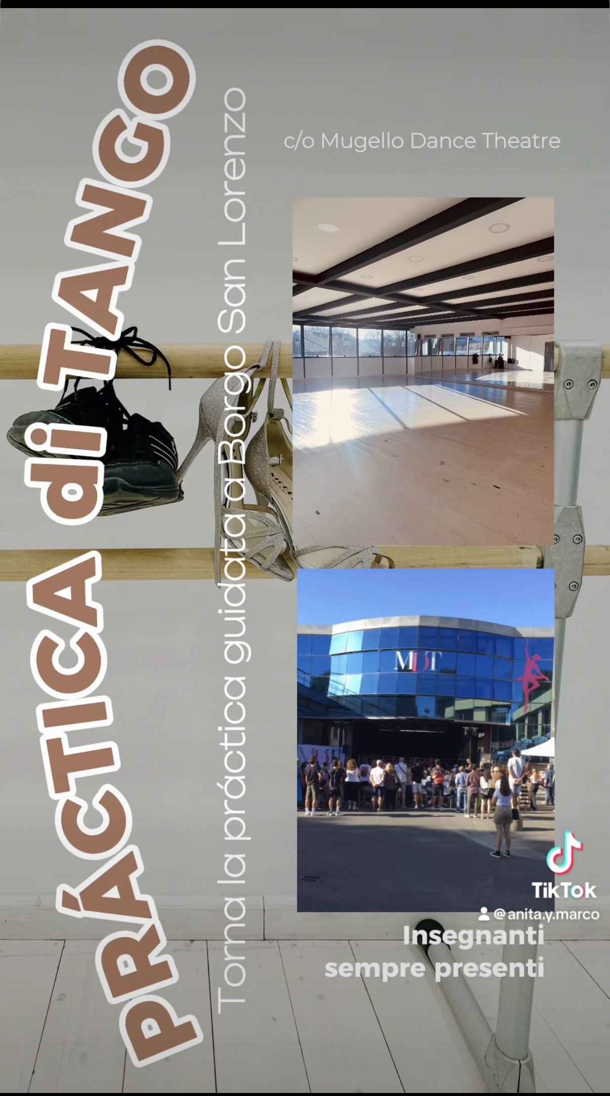 Torna la Práctica di Tango a Borgo San Lorenzo! Tutti i MercoledÌ dalle 21:30 alle 23:30 presso Mugello Dance Theatre. Un luogo dove poter venire a condividere una serata con altri Tangueros e Tangueras. Potrai ballare, ripassare o fare due chiacchiere. E' "guidata" perche gli insegnanti saranno sempre presenti in sala se avrai bisogno chiarire qualche dubbio! Ti aspettiamo!