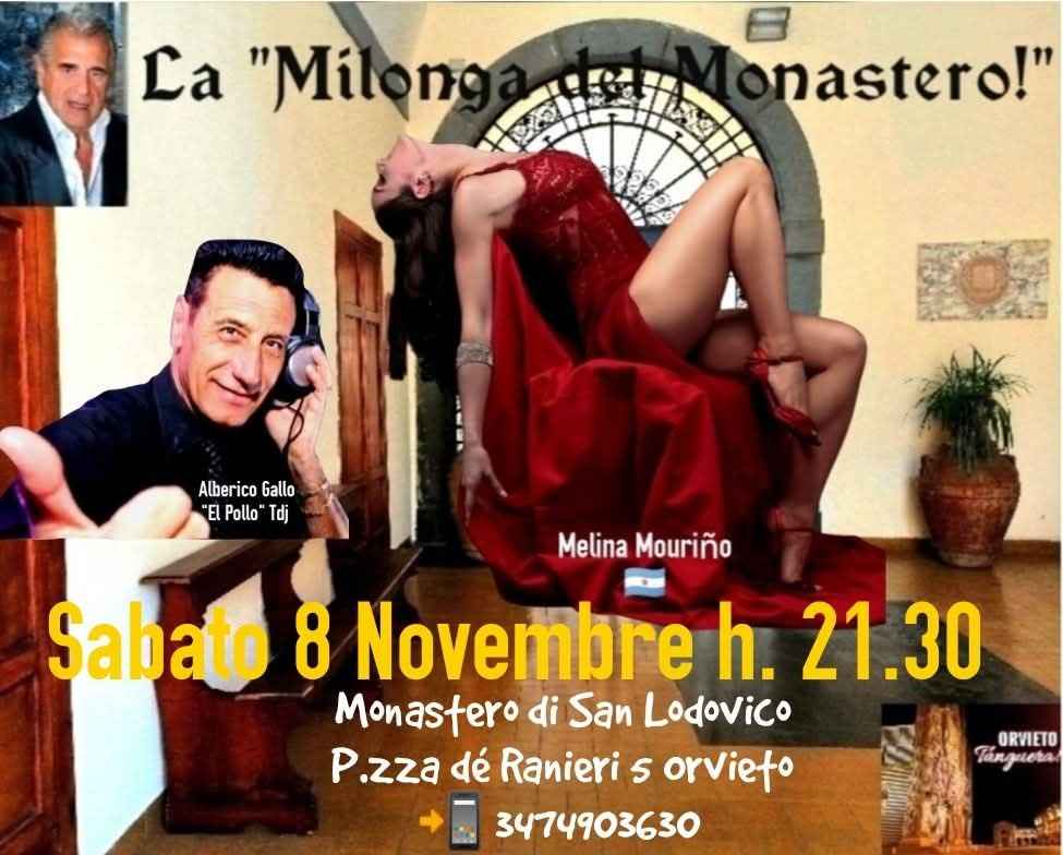L'associazione Sportivo Dilettantistica e Culturale Bogartango A.s.d. - con Sede in Orvieto, Vi invita Sabato 8 Novembre h. 21.30 alla quarta Serata della Stagione 2025/26 de La "milonga del Monastero!", per una Nuova Gran Noche di autentico Tango argentino tradizionale! _________________________