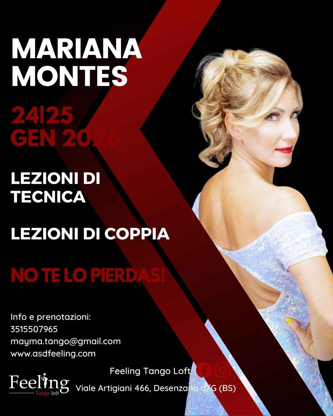 🌟 Un evento imperdibile per tutti gli amanti del tangoper il terzo anno consecutivo, abbiamo l’onore di ospitare Mariana Montes, ballerina e maestra di fama internazionale.un weekend interamente dedicato alla ricerca della qualità del movimento, della connessione e dell’eleganza nel tango, attraverso seminari di tecnica individuale e di coppia, e una serata di milonga aperta a tutti.