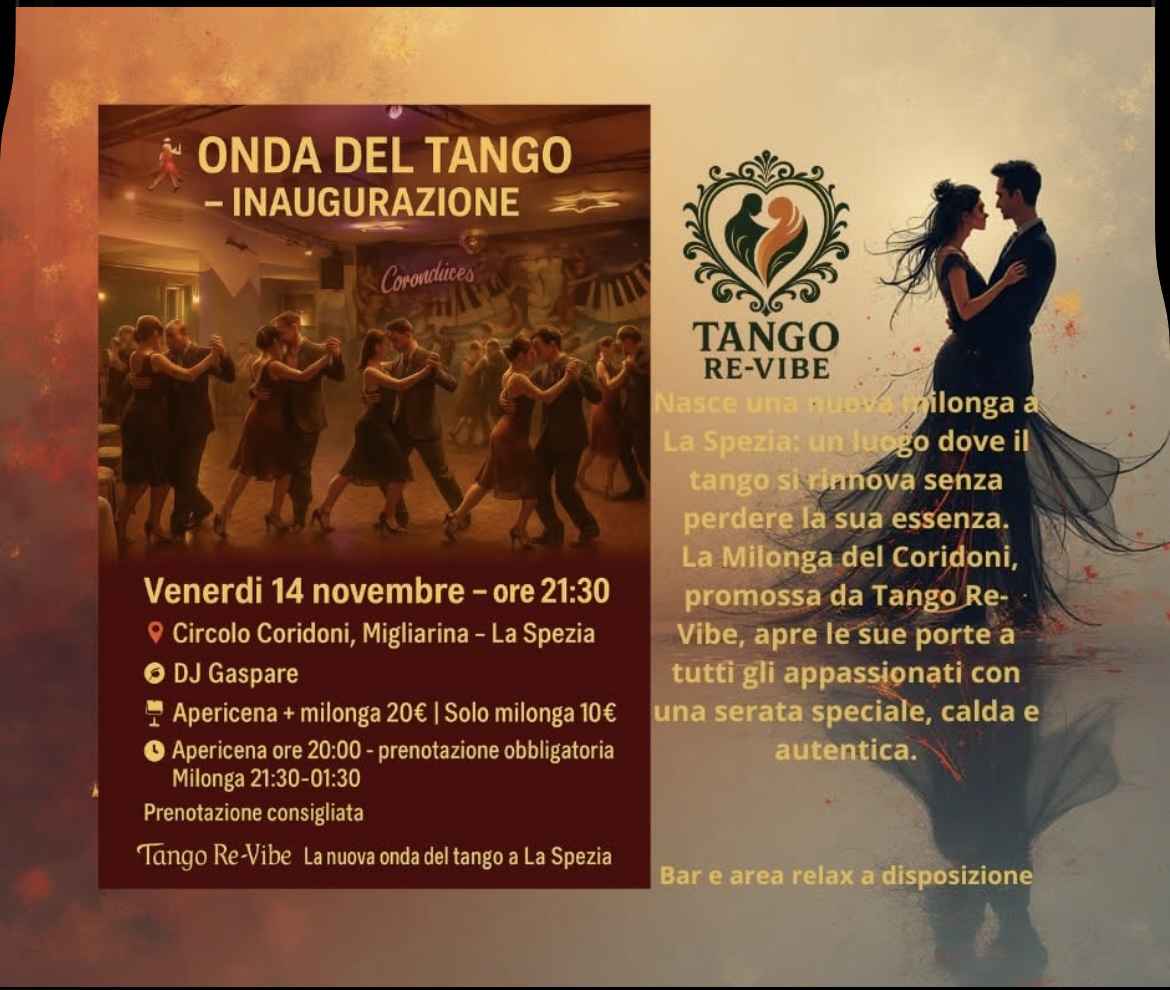 ONDA Del TANGO, la milonga del Circolo Coridoni promossa da Tango Re-vibe A.S.D., inaugura con una serata speciale tra abbracci, musica e convivialità.