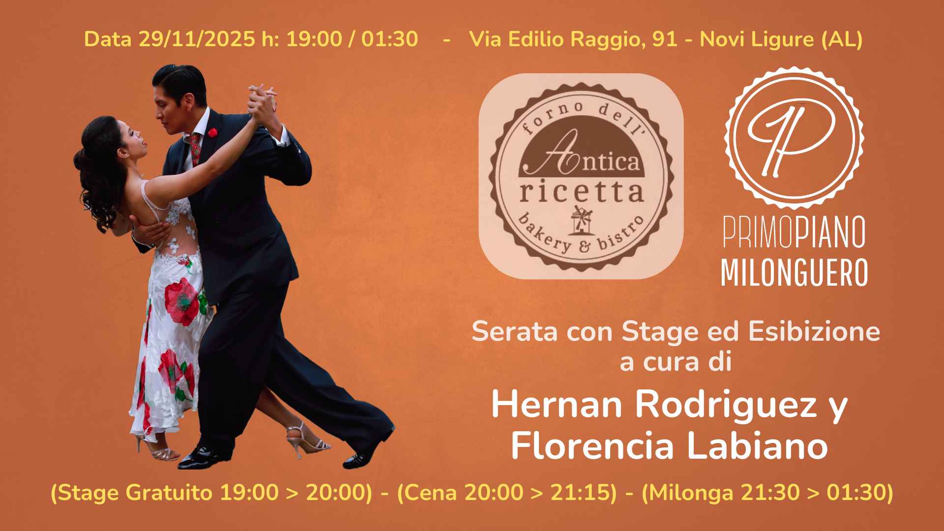 Per chi volesse approfittare dell'unicità dell'occasione, dalle 19:00 alle 20:00, Hernan y Florencia, terranno un interessantissimo stage gratuito.