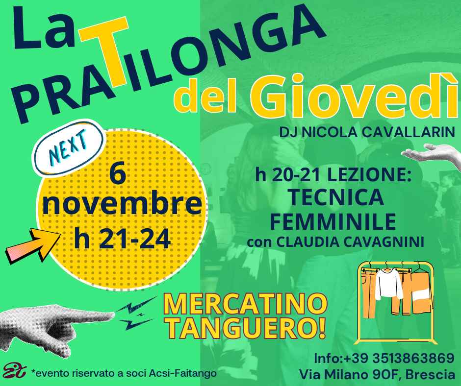 La Pratilonga è uno spazio dedicato a chi vuole praticare il tango argentino in amicizia in un contesto tranquillo e alla mano.attività riservata ai soci tesserati Acsi TANGO