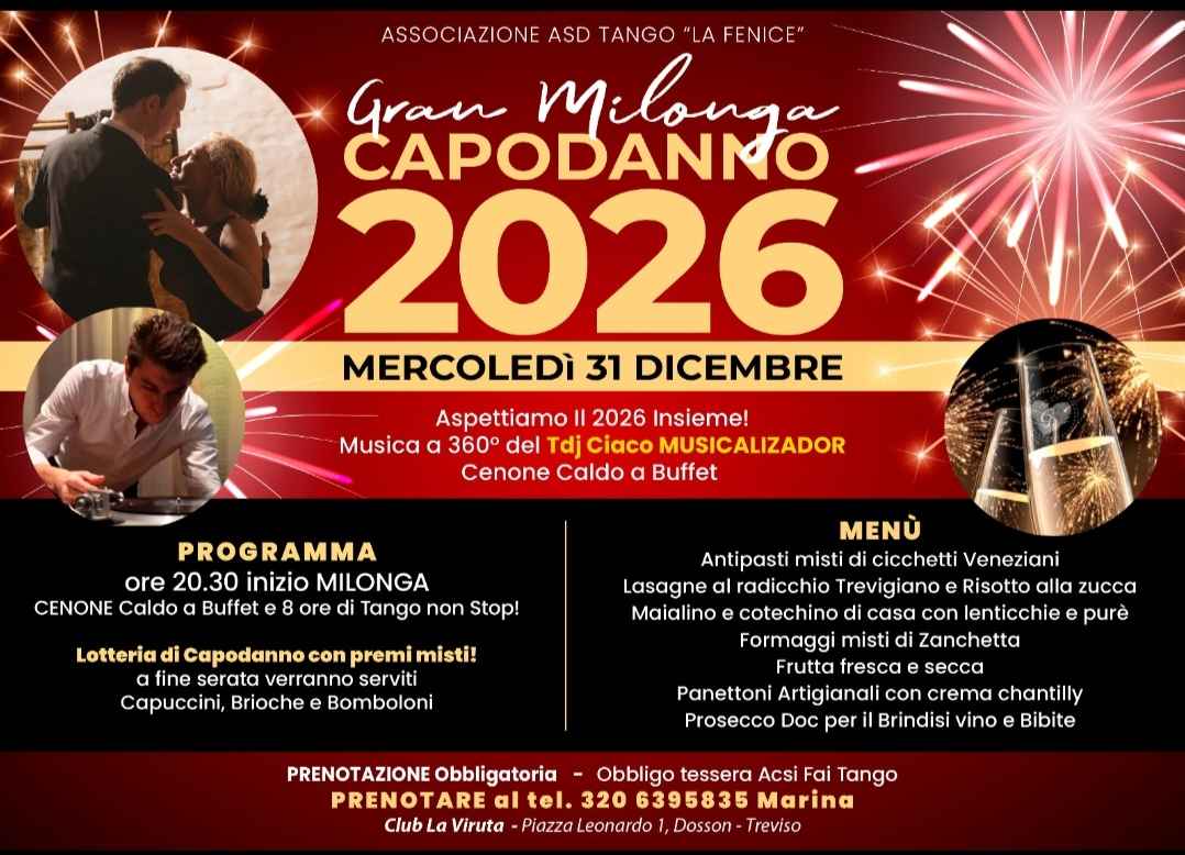 Gran Milonga di Capodanno Tdj Ciaco Cenone Caldo a Buffet Prenotare Al 3206395835