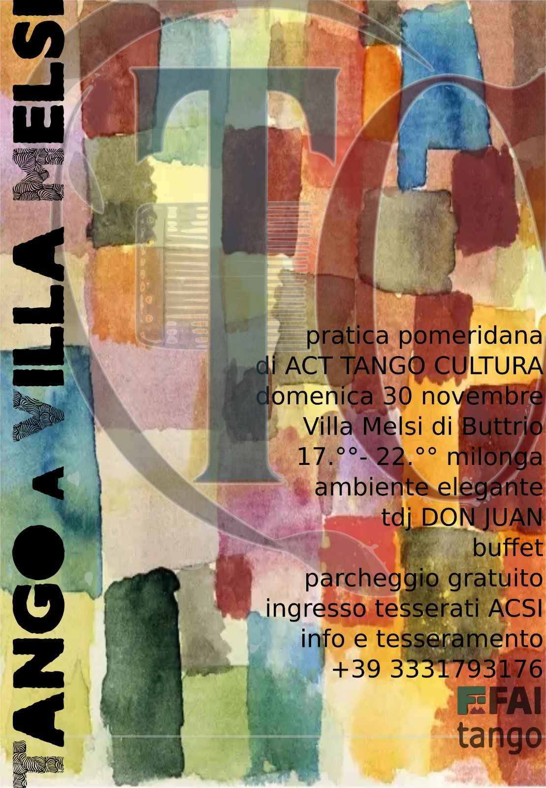 Ingresso riservato agli associati Acsi Faitango, per informazioni, prenotazioni e rinnovare la tessera per il 2026: prenotango@gmail.com