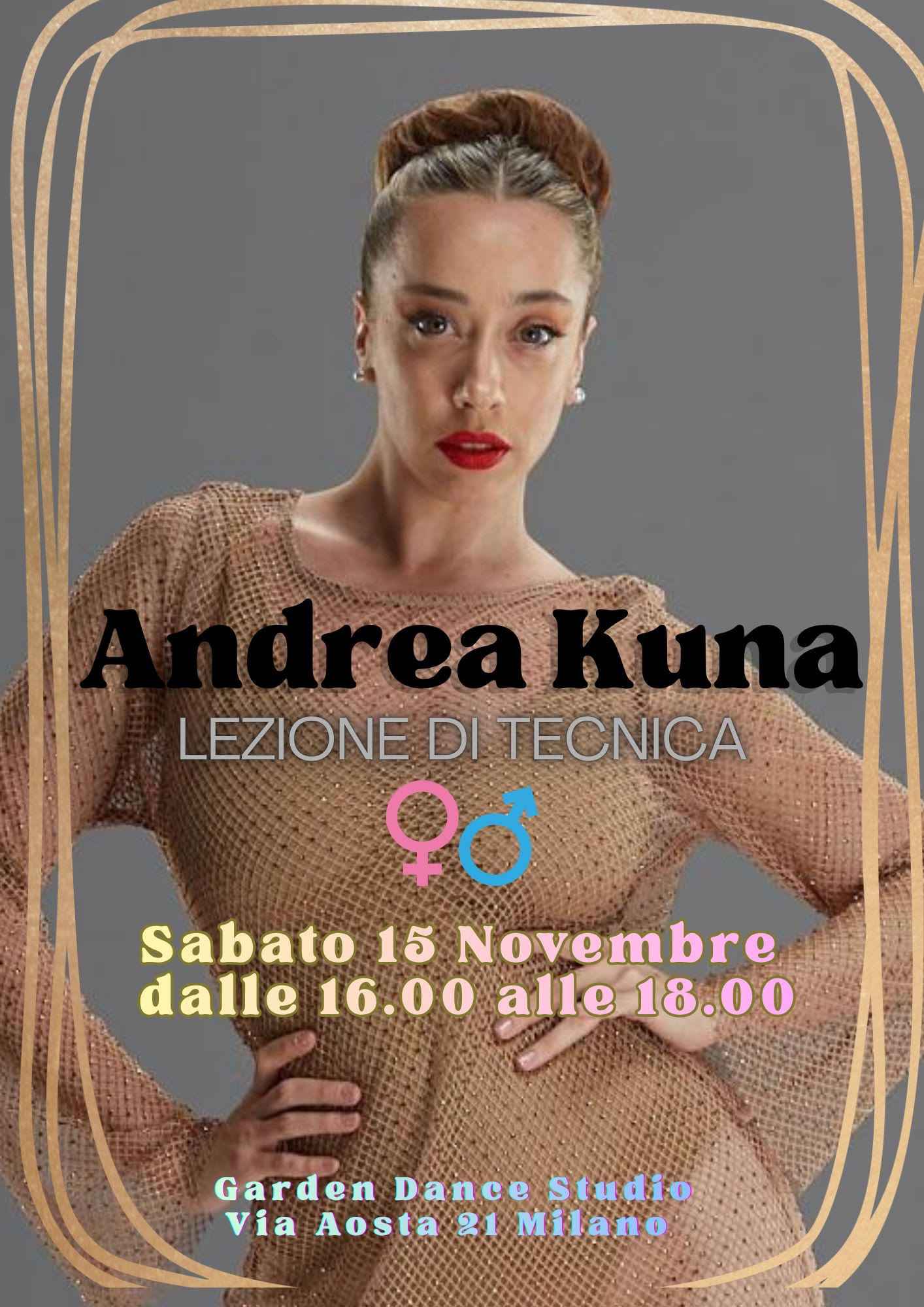 Stage di Tecnica femminile e maschile con la maestra e ballerina Andrea Kuna.presso Garden Dance Studio Via Aosta 21 Milanodalle ore 16.00 alle ore 18.00contributo: 25 europer prenotare potete inviare un messaggio whatsapp con nome e cognome al 3930421099 (Francesca).
