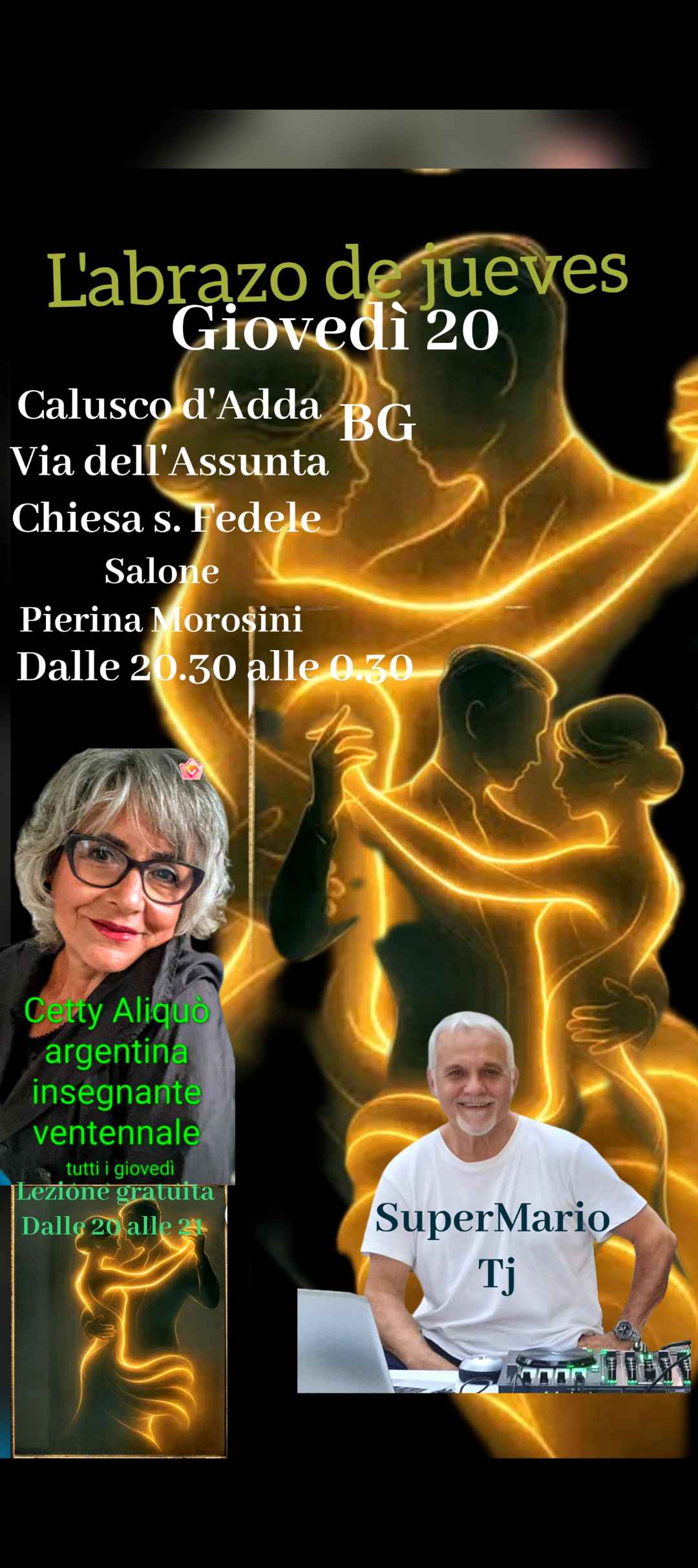 Dalle 20 alle 21lezione gratuita con la maestra argentina Cetty Aliquò ore 22 sorteo X uomo e donna Na vostra disposizione un buffet libero di tramezzini salatini dolcetti e bibite varie.