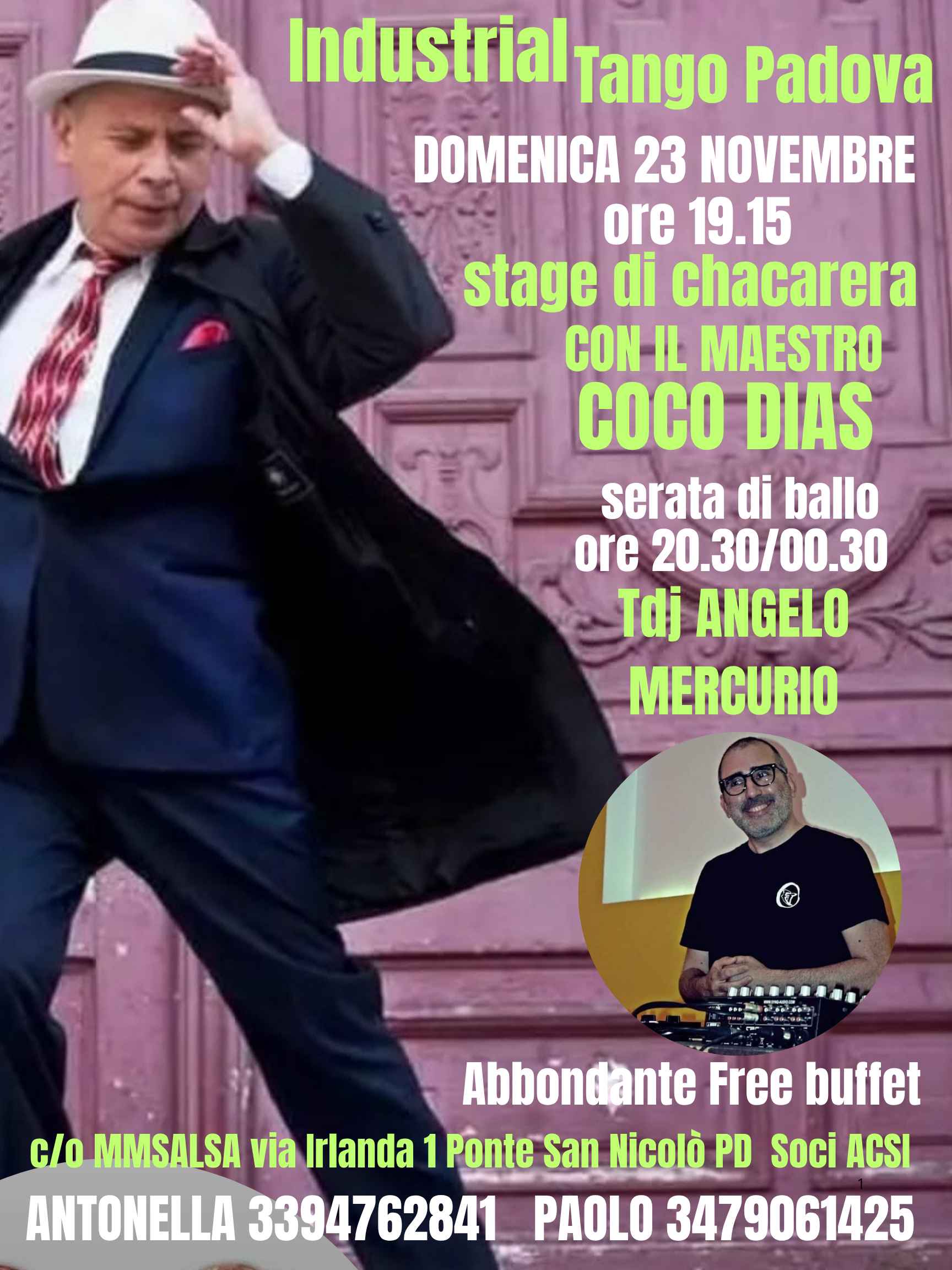 Industrial Tango: stage di Chacarera con il maestro Coco Dias; Tdj Angelo Mercurio