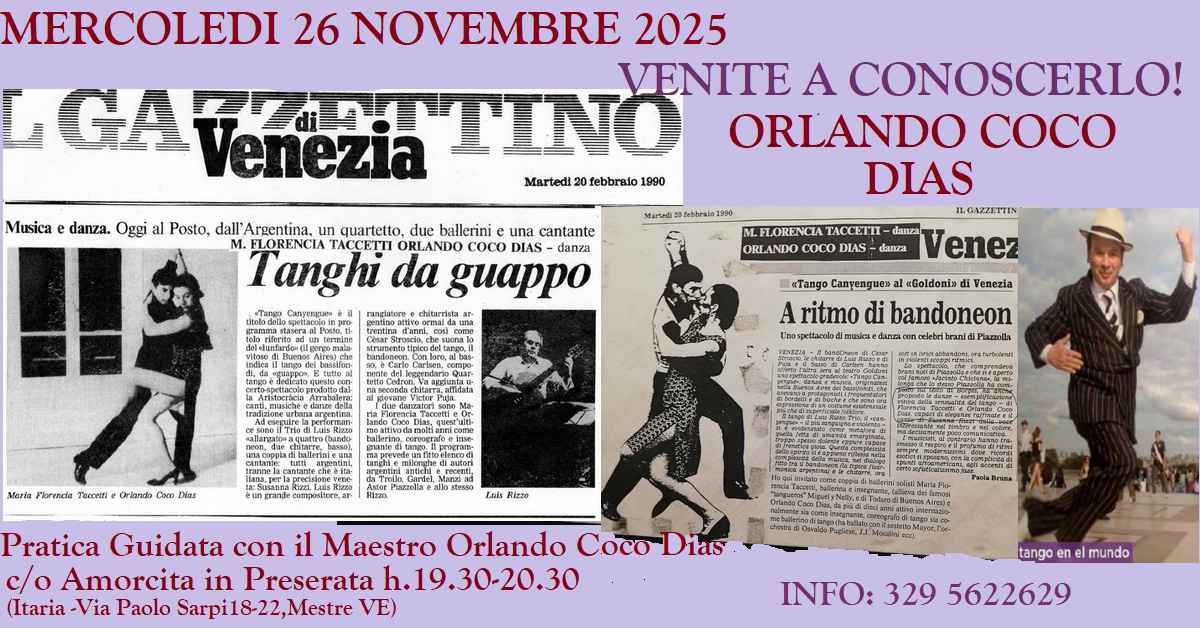 Pratica guidata con il maestro orlando coco dias in preserata dalle ore 19.30 alle 20.30