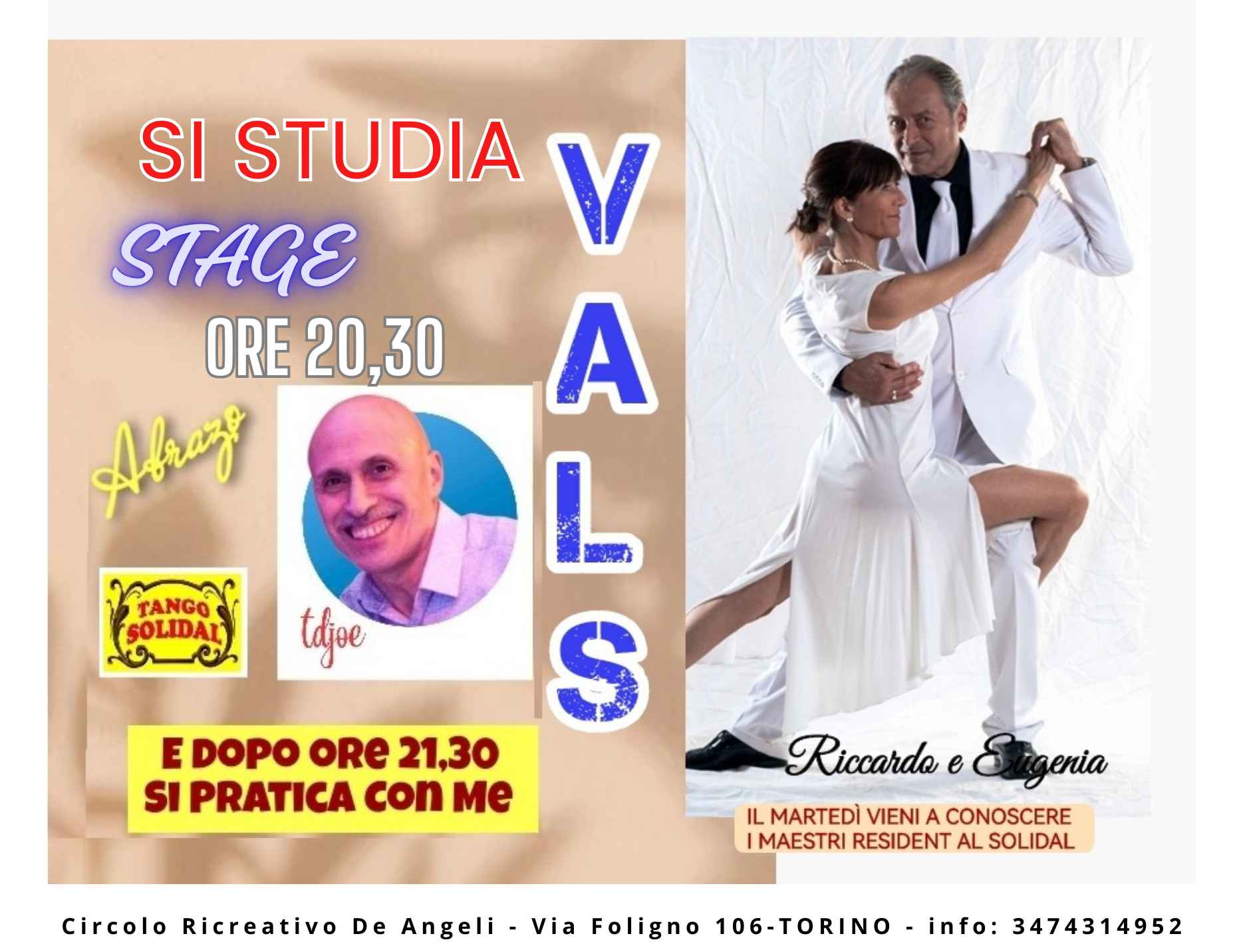 S i s t u d i a v a l s con riccardo e Eugeniasolidal Tango Insieme Riccardo Giustetto e Eugenia Ricci Comunicano, Con Piacere che Il Martedì Continua La Collaborazione Con Stage Tematici Di Tango Milonga Vals. vi Aspettiamo Tutti i Martedì Dalle 20,30 Alle 21,30 E Dopo Si Pratica Con La Selezione Di Joe Tdj Resident Fino alle 23,30 m A R T E D I 09 Dicembre si studia V a l s per info: 3474314952 e Siamo In Via Foligno 106 Torino.come Arrivare da Noi: https://maps.app.goo.gl/Wa2Rg8rKeVzVoWGc7 dove Parcheggiare: https://maps.app.goo.gl/ddyousPCjvbmxeRn6Via Foligno 106 Torino Per informazioni e prenotazioni Tel. 3474314952