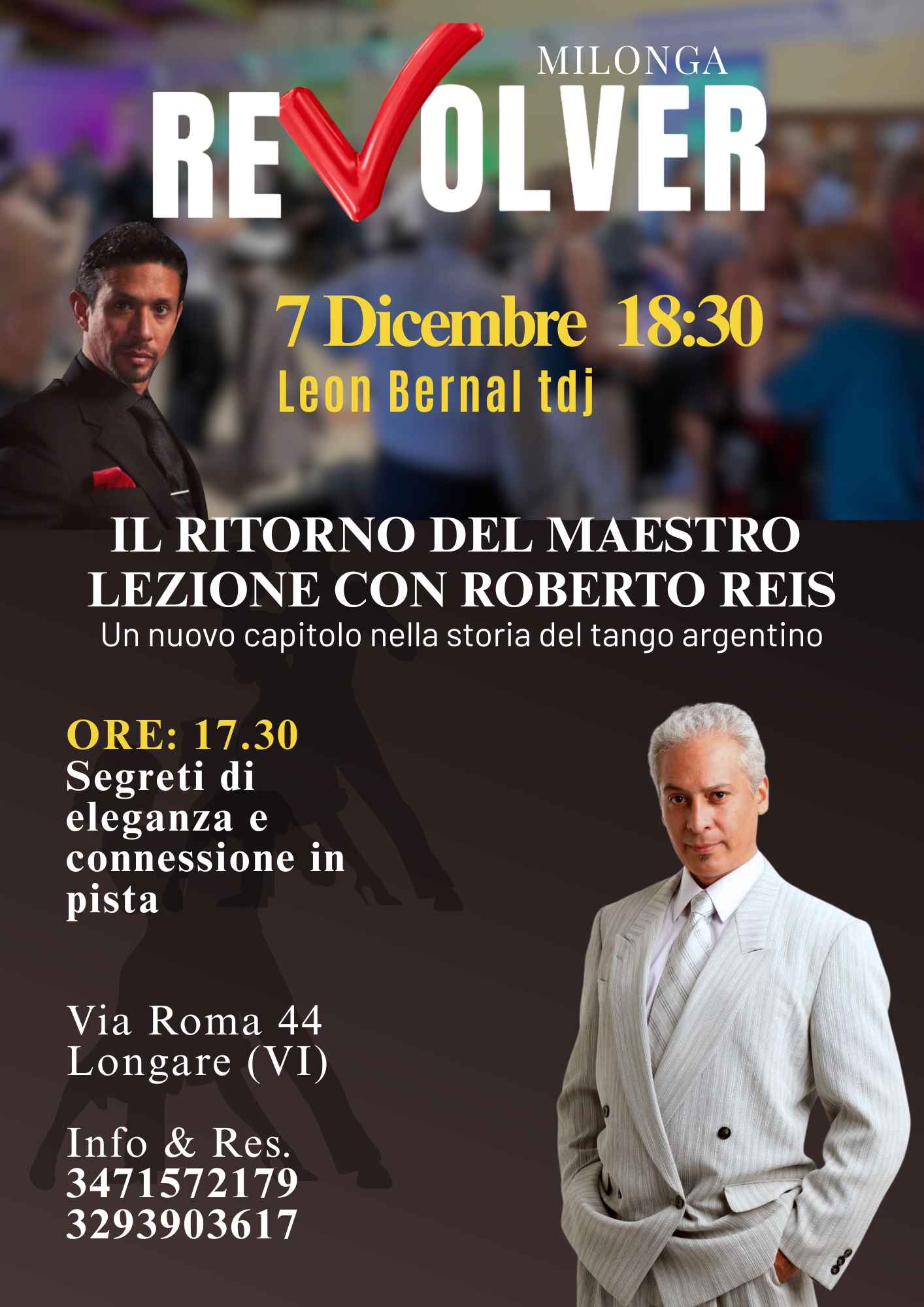 🕠 Ore 17:30 – Lezione con Roberto Reis “come ballare bene in milonga”