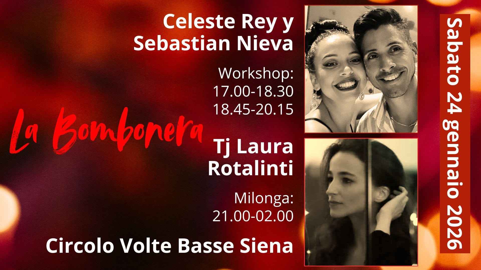 Con mille ricordi di un’estate fantastica ancora scolpiti nel cuore, a grande richiesta ritorna la nostra milonga più attesa, ma questa volta nella versione invernale! Dopo la magia della grande pista all’aperto, abbiamo trasformato la sala interna in una vera Bomboniera, : acustica, colori, cornici, velluti, luci, tutto si fonde in un gioco danzante che rende ogni evento un’esperienza unica ed emozionante!quattro appuntamenti mensili che prevedono workshop più milonga in un clima di allegria, amicizia e convivialità.