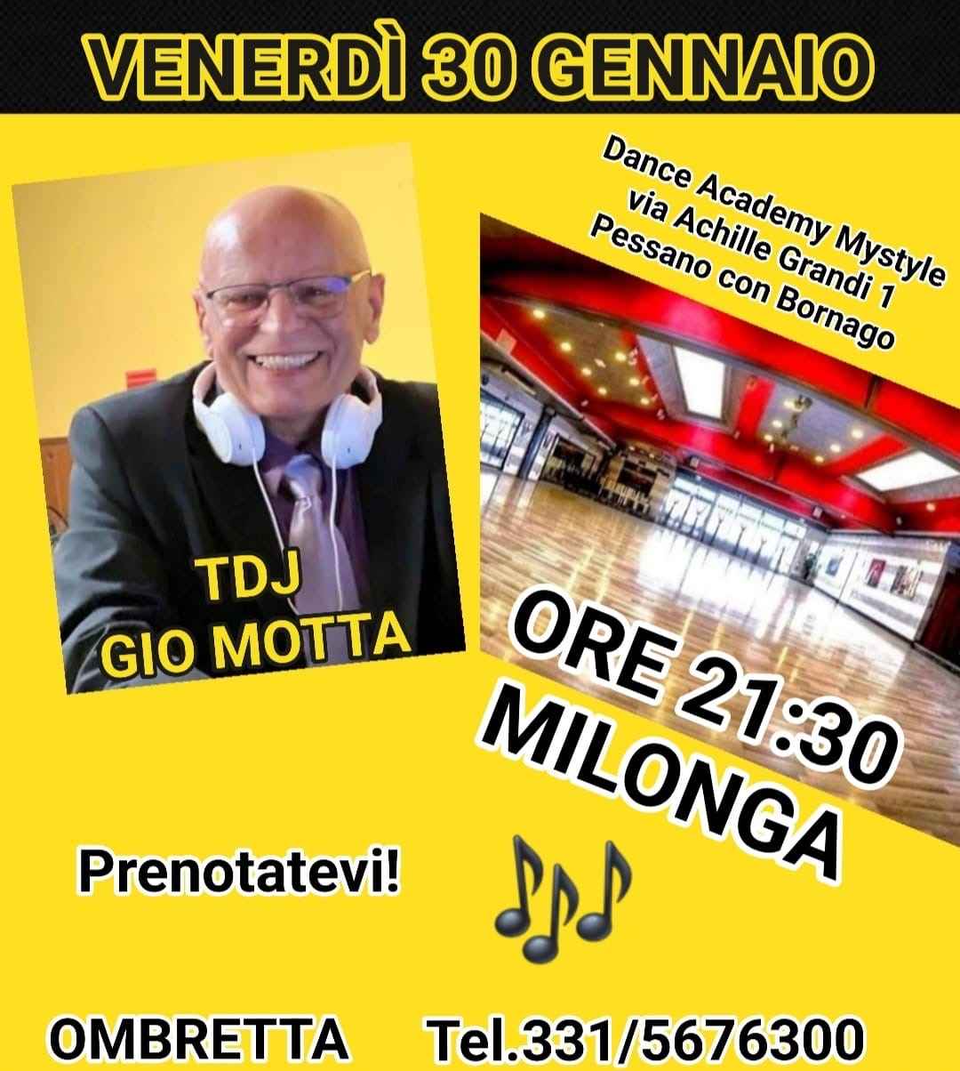 Venerdi 30 Gennaio Milonga . in regia torna il Super Musicalizador Tdj Gio Motta