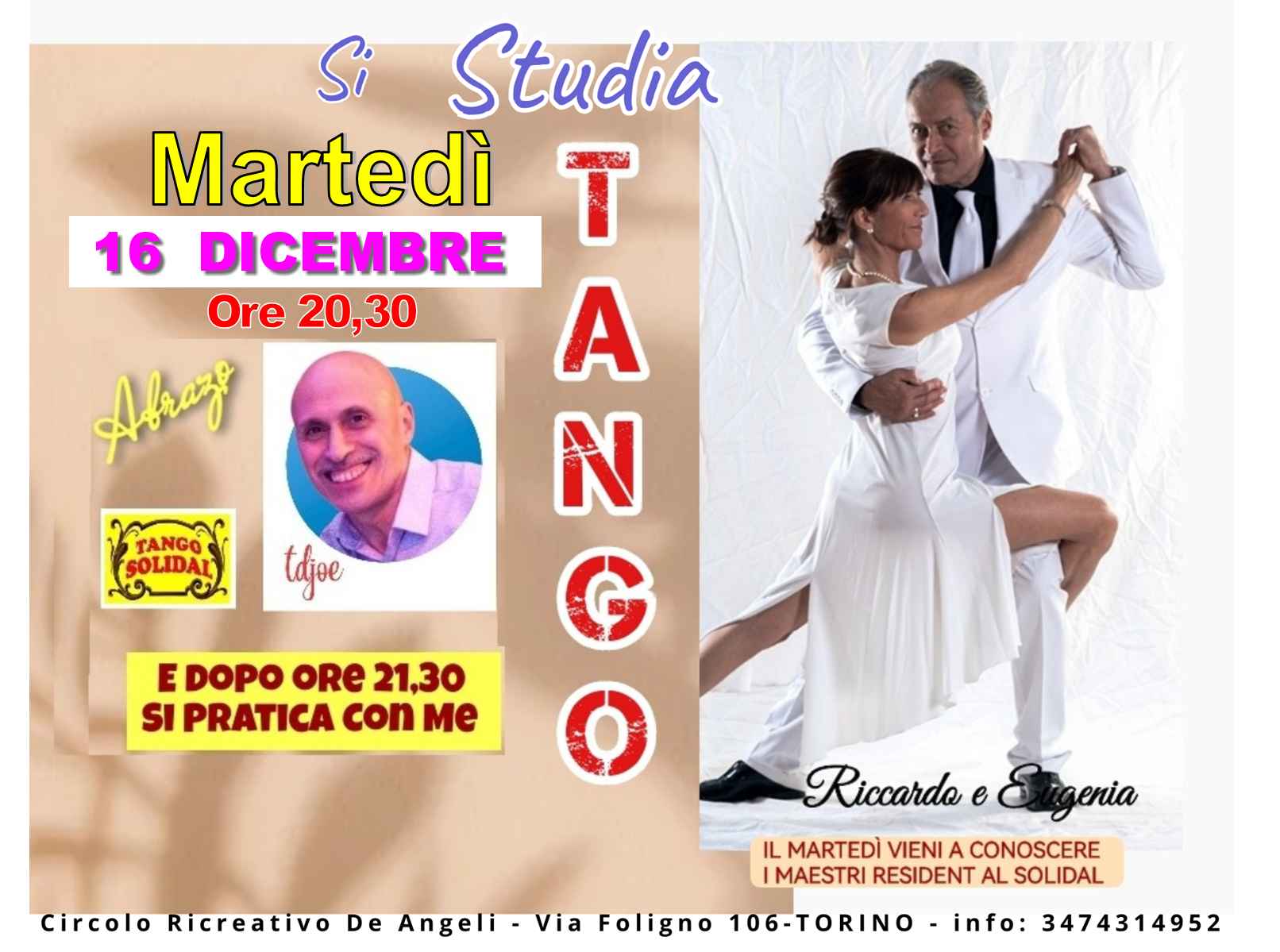 T  a  n  g  o    con Eugenia e Riccardo  solidal Tango e  con Riccardo e Eugenia continuano gli Stage tematici di Tango Milonga Vals. Vi Aspettiamo Dalle 20,30 Alle 21,30 E Dopo Si Balla. La Selezione Di Joe Tdj Resident.