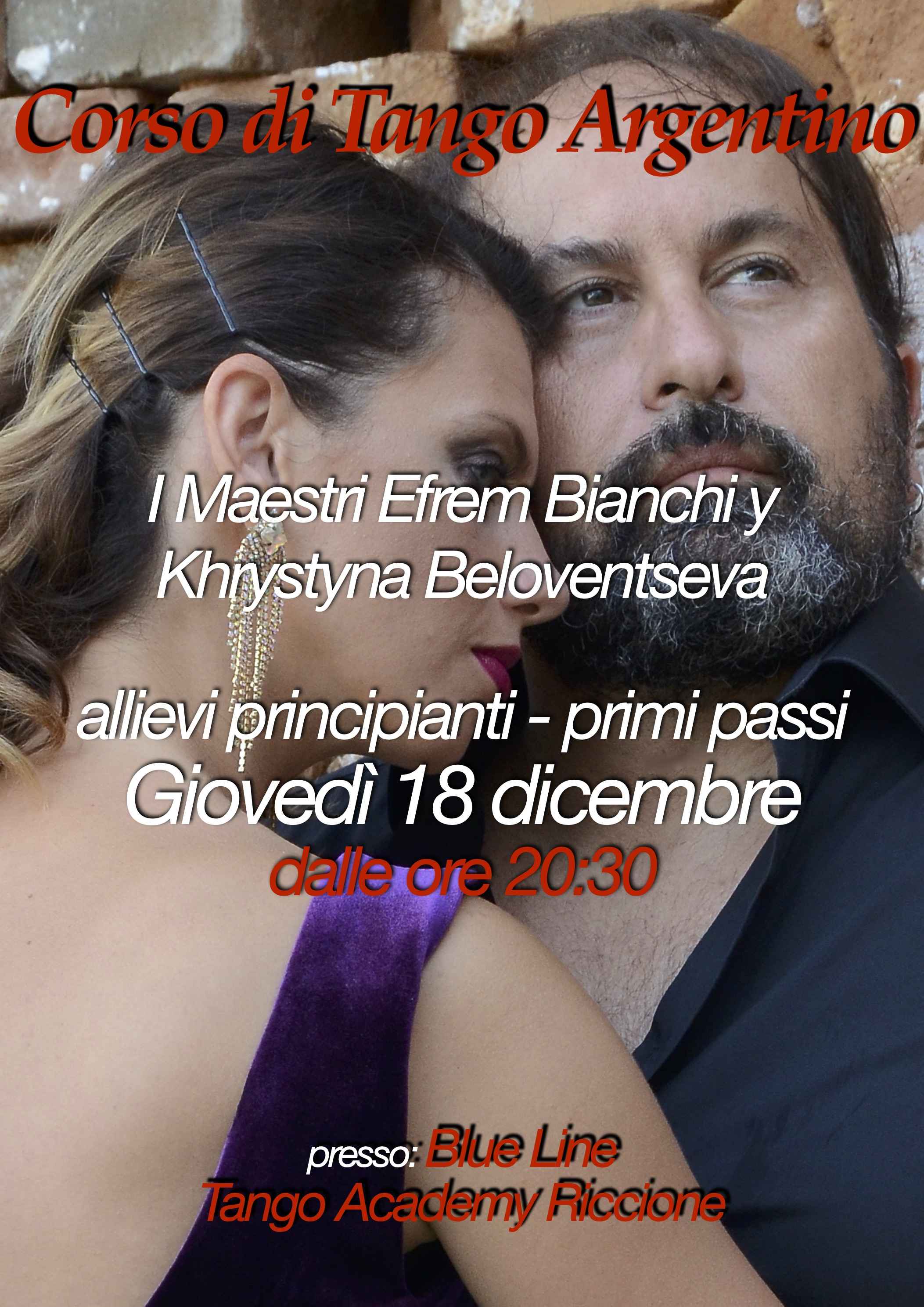 I maestri Efrem Bianchi y Khrystyna Beloventseva propongono il loro percorso di studio per le classi principianti. Giovedì dalle 20:30 alle 22:30 serata dedicata alla interpretazione, musicalità e improvvisazione marca e struttura del Tango argentino. Analizzeremo gli elementi, le tecniche e le dinamiche fondamentali per imparare e migliorare il proprio stile di ballo. L'academy dispone di 3 sale dedicate con pavimento tecnico e ammortizzato. Lezioni individuali, tecnica femminile, Stage e seminari intensivi. Info 333.5802524 - 331.4071781
