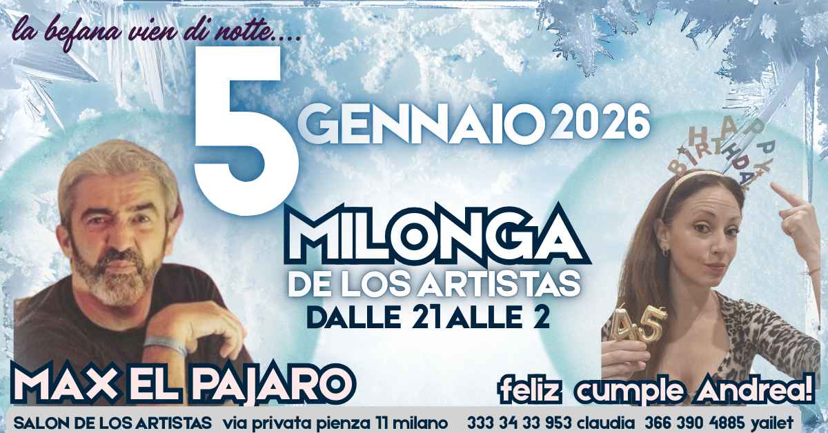 Lunedì 5 Gennaio"" la prima Milonga dell'anno Al Salon De Los Artistas""si riparte alla grande per un nuovo anno di TANGOOOOOO!!!!