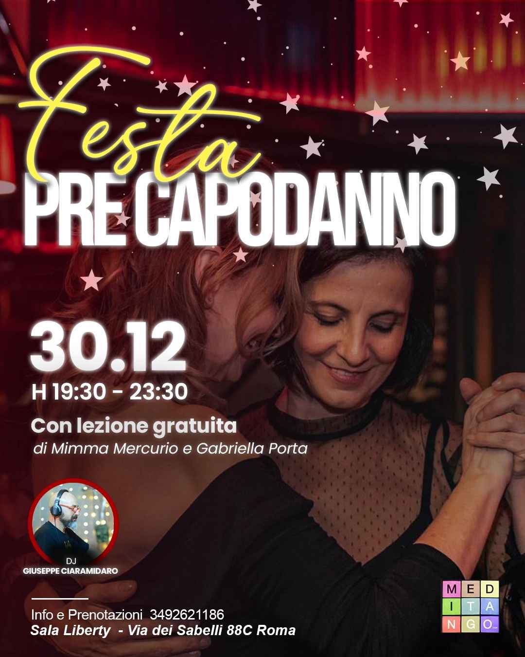 🕢 19:30 – 20:30lezione di tango aperta a tutti con Mimma Mercurio e Gabriella Porta