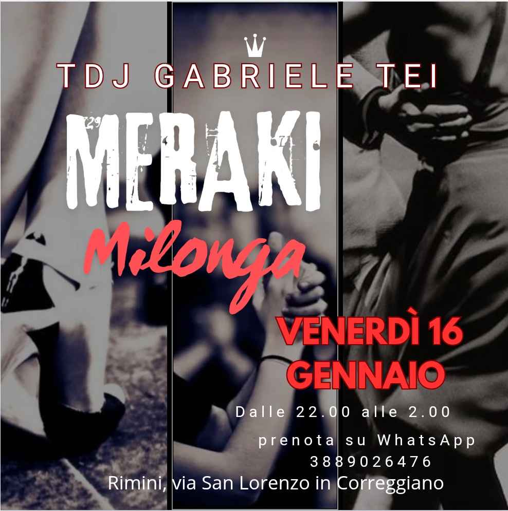 🧡✨ Meraki Milonga ✨🧡venerdì 16 gennaio📍 Riminivia S. Lorenzo in Correggiano, 57, 47924 San Lorenzo In Correggiano Rn🕙 22:00 – 02:00🎶 Tdj Gabriele Teicercheremo, come sempre, di farvi sentire a casa,con abbracci fuori e dentro la pista 🤗💃allestiamo un buffet per condividere🥂 Bere libero sempre a disposizioneperché il tango è anche stare bene insieme, senza fretta.🚗 Parcheggio gratuito e liberouna serata di musica, sorrisi, caloree quella bella atmosfera che solo tra tangueri nasce 🖤📲 Prenotazione Whatsapp: 388 902 6476evento riservato ai soci Acsi con tessera in corso di validità, chi non ha la tessera può richiederla al numero 3889026476. Per i partecipanti alla milonga sconto sul tesseramento.vi aspettiamo, con il cuore aperto e la pista pronta ✨