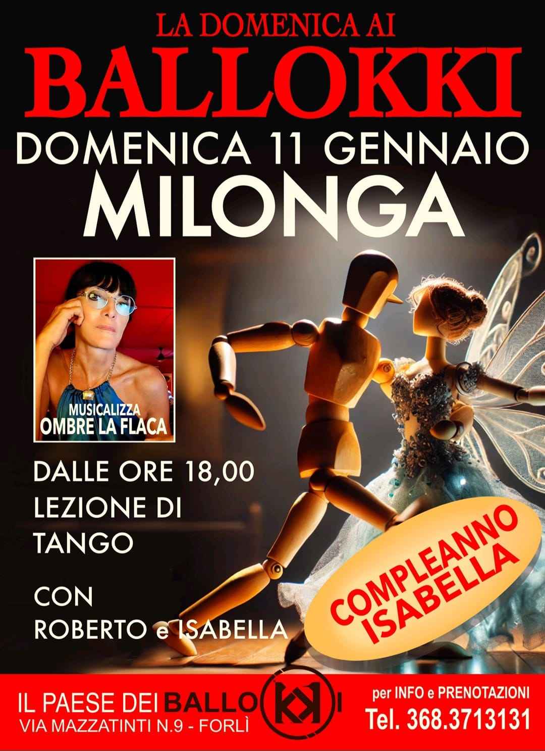 Dalle ore 18 lezione di tango con Roberto y Isabella e a seguire Milonga! Musicalizza La Ombre