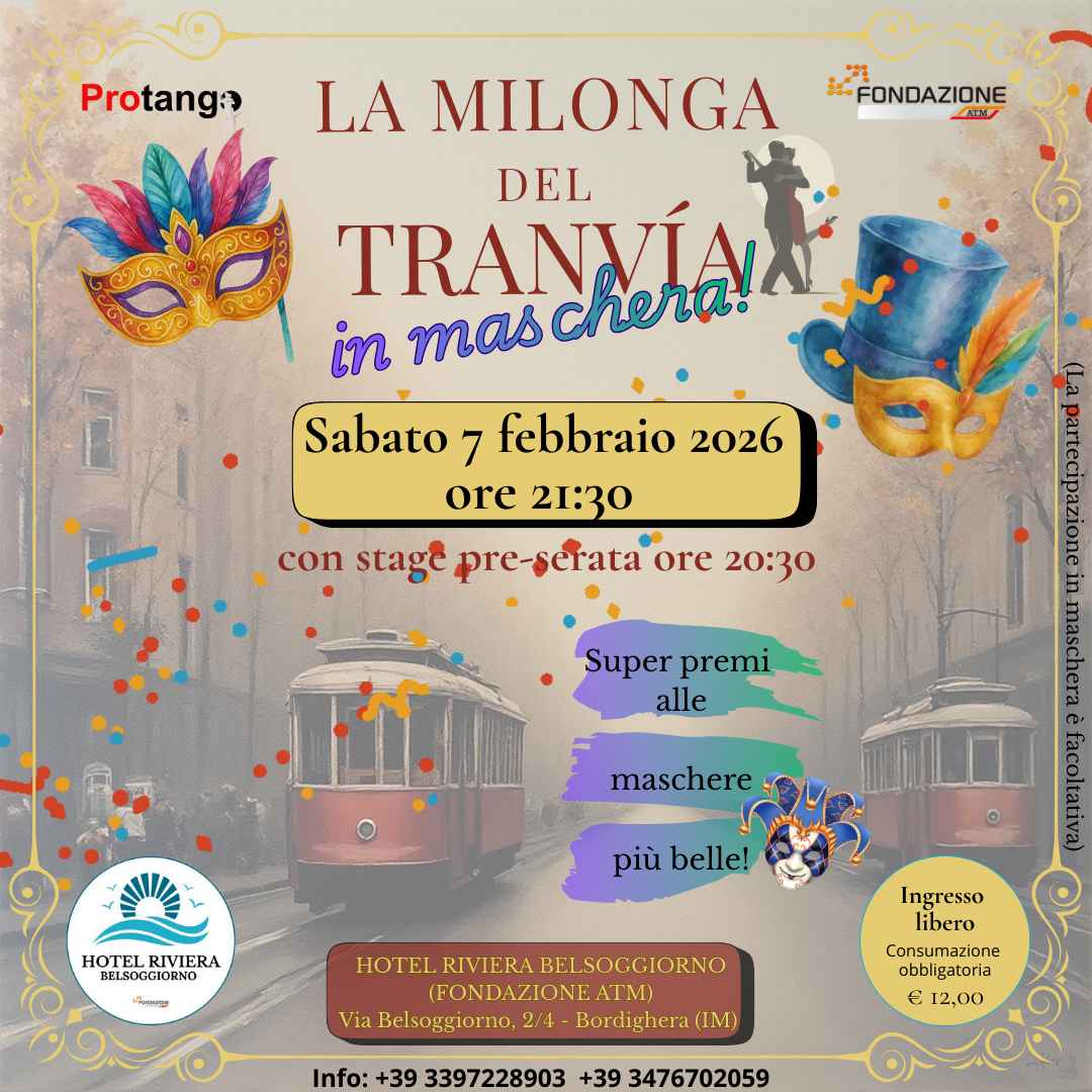 ti invita sabato 7 febbraio 2026 al secondo appuntamento de la Milonga Del Tranvia in Edizione Speciale!!! In MASCHERA!!