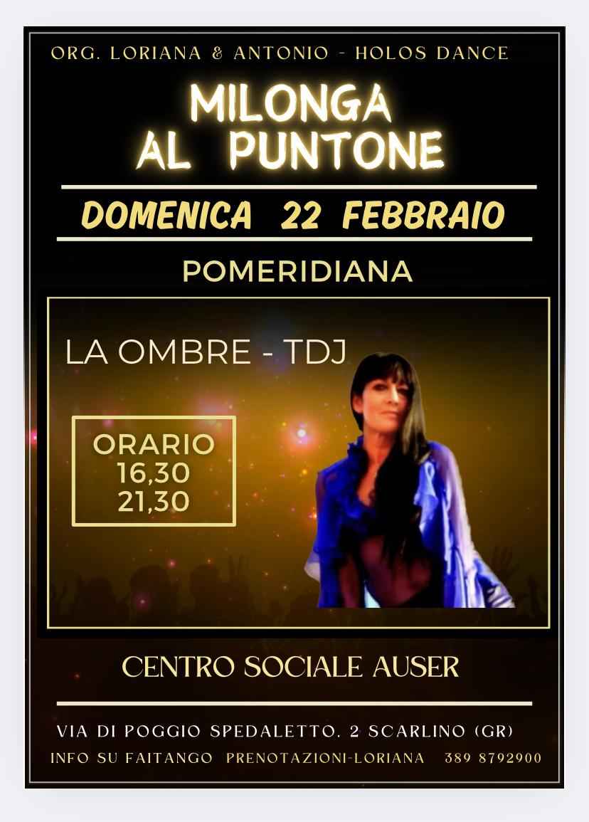 inizio milonga ore 16,30 ultima tanda ore 21,30