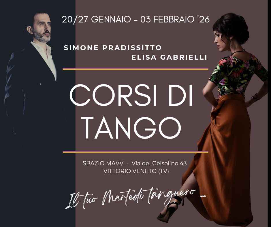 𝐏𝐞𝐫𝐜𝐨𝐫𝐬𝐨 𝐝𝐢 𝐓𝐚𝐧𝐠𝐨 𝐕𝐚𝐥𝐬 – 𝟑 𝐋𝐞𝐳𝐢𝐨𝐧𝐢da Martedì 27 Gennaio 2026ogni martedì, un viaggio nel ritmo avvolgente e nella musicalità elegante del Tango Vals