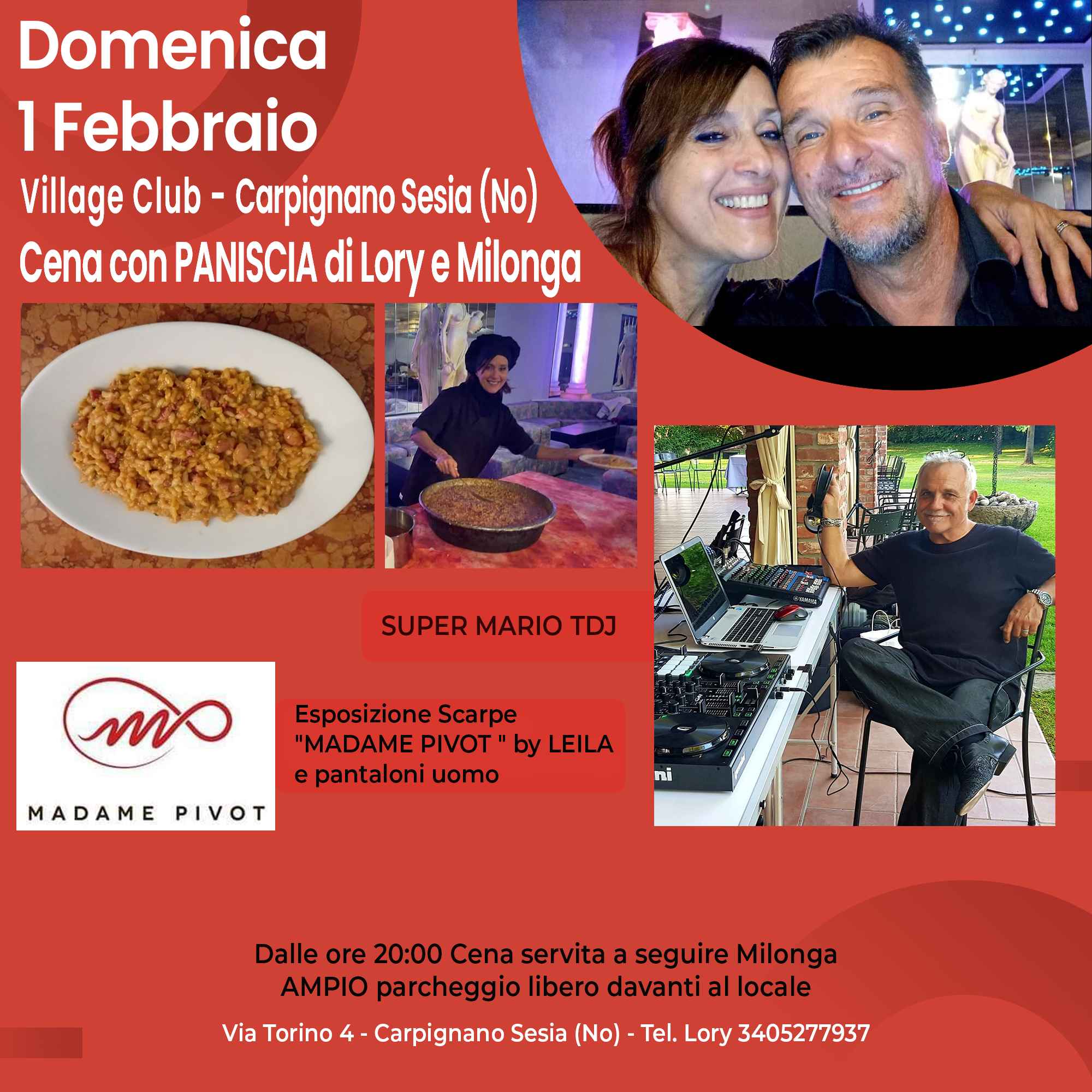 Domenica 1 Febbraio Cena con "paniscia Di Lory" e a seguire Milonga a Carpignano Sesia (No) in via Torino 4.😍‼️🍛