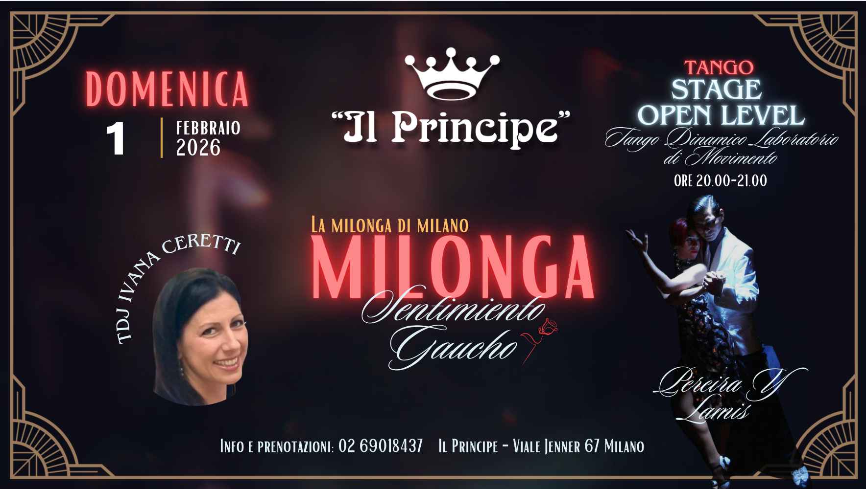 Amici del Principe, vi aspettiamo per tornare a ballare insieme nella nostra Milonga "sentimiento Gaucho".apertura porte: Ore 21.00