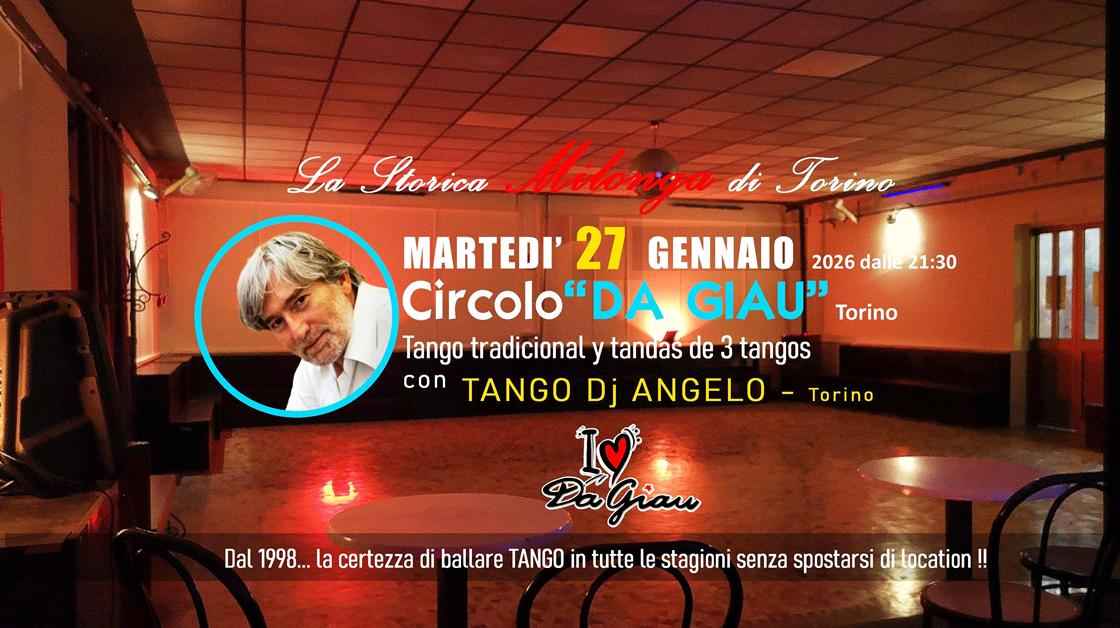 Il circolo "da Giau" propone una serata interamente dedicata al Tango Argentino, che, con oltre trent'anni di attività ininterrotta, rappresenta l’appuntamento storico e più duraturo nel panorama delle Milonghe Torinesi. A partire dalle ore 21:30 tutti gli appassionati di questa sensuale danza potranno abbandonarsi sulle note dei più bei temi delle Milonghe di Buenos Aires.