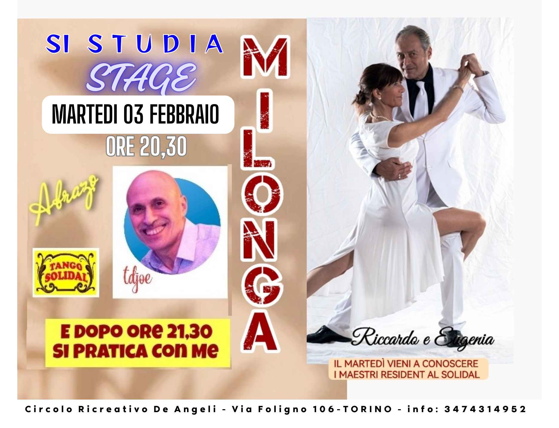 Si Studia al Solidaltango Insieme a Riccardo Giustetto e Eugenia Ricci, e comunicano con piacere che Il martedì continua