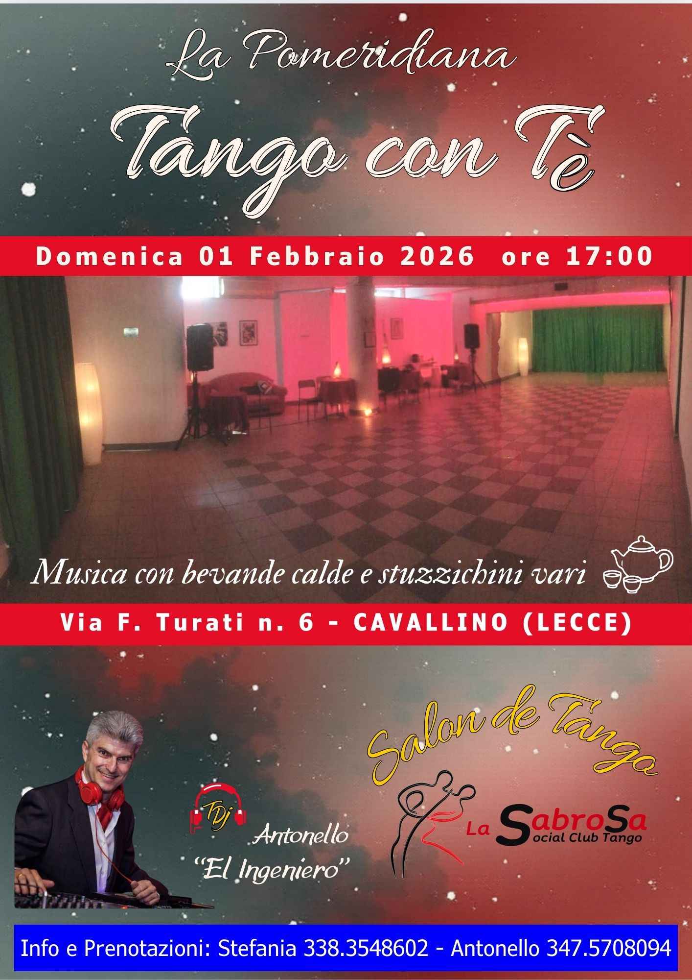 Dopo il grande successo del 10 gennaio con la Milonga Sabrosa al Salon de Tango, ci ritroveremo con la Pomeridiana del Tango con Tè.