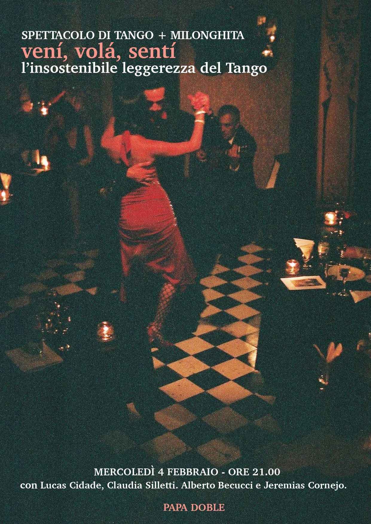 Concerto-spettacolo "venì Volà Sentì o L'insostenibile leggerezza del Tango"di e con Claudia Silletti, Lucas Cidade, Jeremias Cornejo, Alberto Becucci
