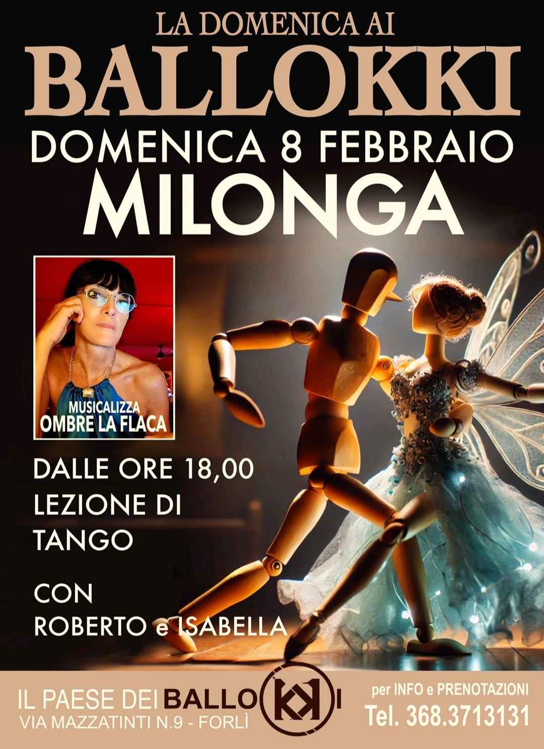 L'8 febbraio è festa a Forlì! Torna La Domenica Ai Ballokki!dalle ore 18 lezione di tango con Roberto y Isabella e a seguire Milonga! Musicalizza La Ombrevi aspettiamo per una domenica indimenticabile di ballo e di festa! Compleanno Isabellail Paese dei Ballokki - Via Mazzatinti 9 - Forlìper info e prenotazione tavoliroberto 368.3713131