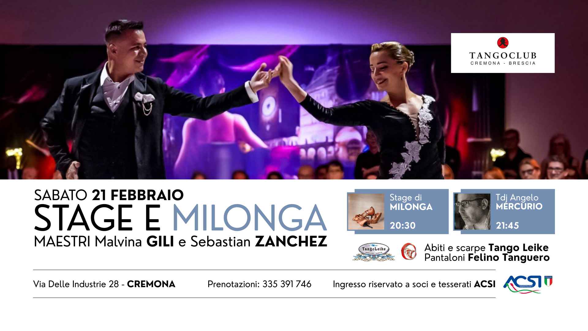 Milonga e Stage con i Maestri Malvina Gili e Sebastian Zanchez
