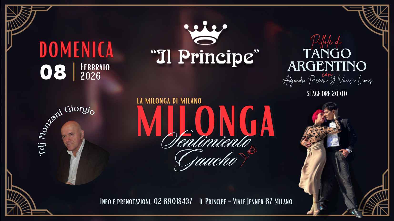 Amici del Principe, vi aspettiamo per tornare a ballare insieme nella nostra Milonga "sentimiento Gaucho".apertura porte: Ore 21.00
