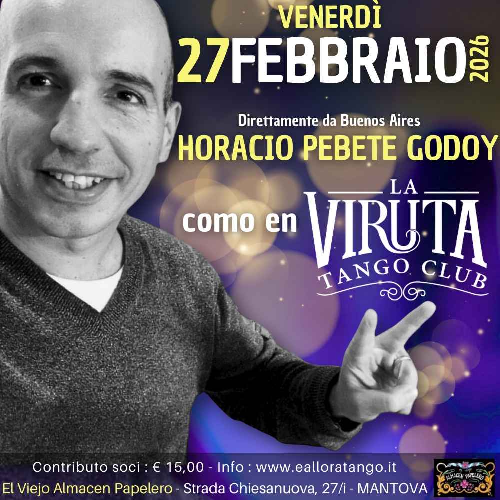 Nell'ambito dei tre giorni di Seminario con Horacio Godoy y Maricel Giacomini... La Serata "come alla Viruta" musicalizza Horacio Pebete Godoy, i Tdj della più famosa Milonga di Buenos Airessoci Acsi 15 €ore 22.00 - 03.00milonga Libera Senza Prenotazione