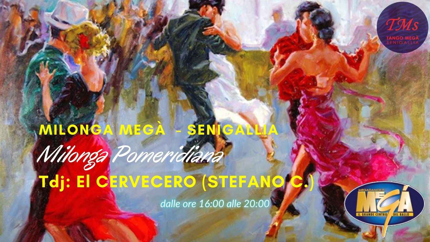 La storica milonga del Megà Disco di Senigallia An tutte le Domeniche pomeriggio [start ore 16:00] nell’ampia sala in parquet “chupeta” ad elevata capienza, non necessita prenotazione