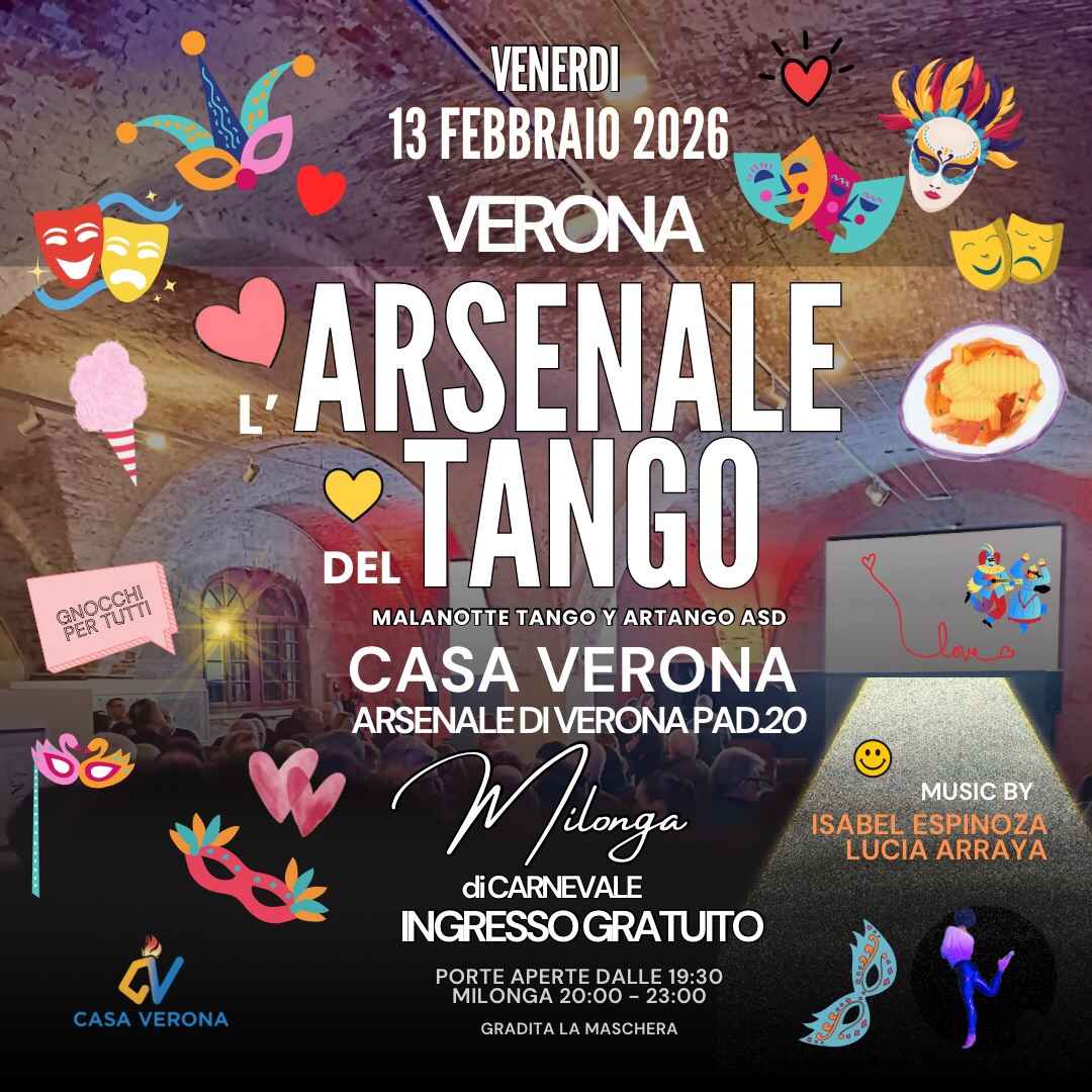 In concomitanza con il Festival di "verona in Love" è del venerdì Gnocolar di Cernevale in Comune di Verona abbraccia il Tango in uno spazio unico, creato per promuovere e sostenere lo sport e le arti