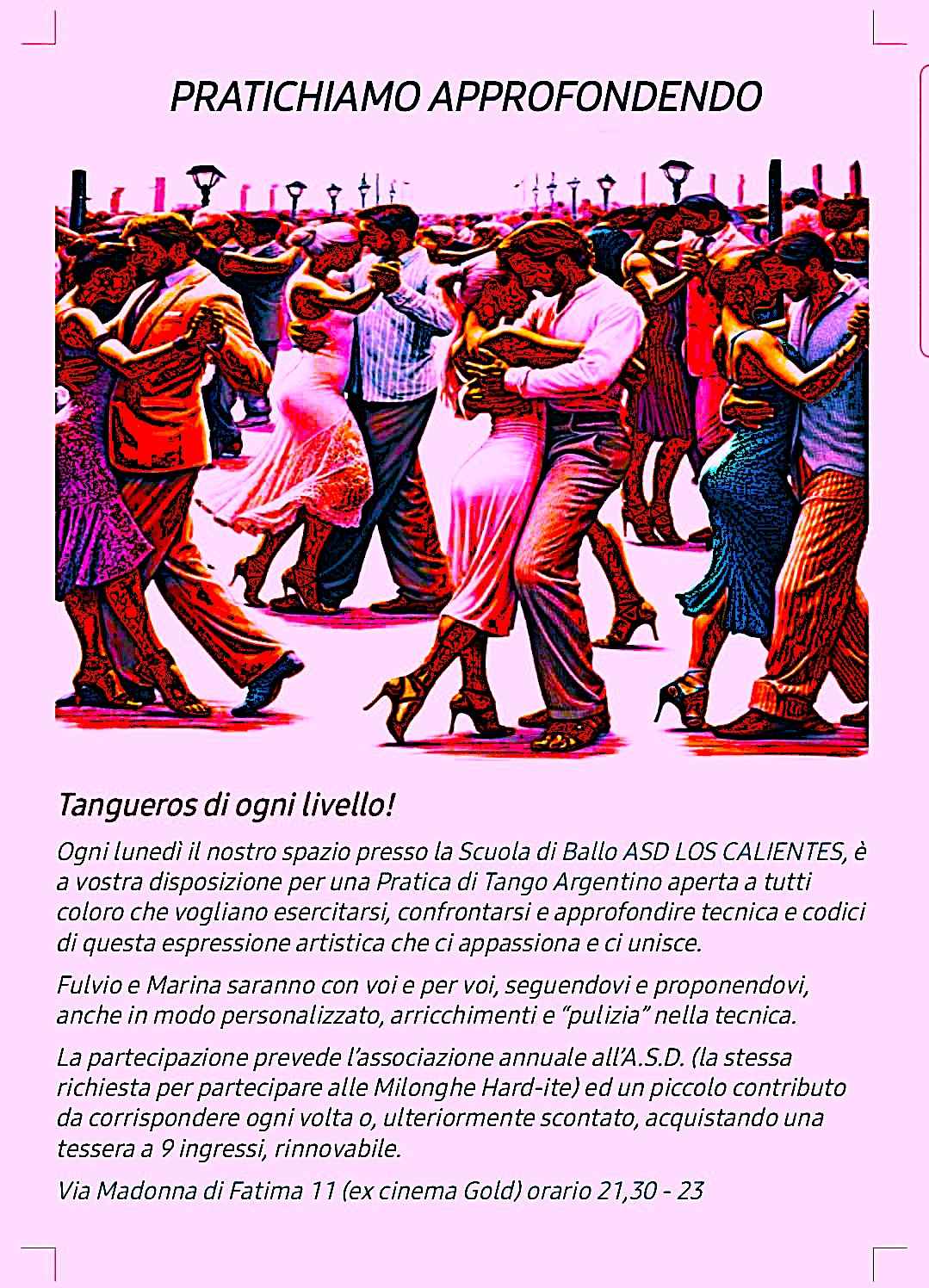 Si creerà ogni volta un vero, piacevole, laboratorio tanguero.