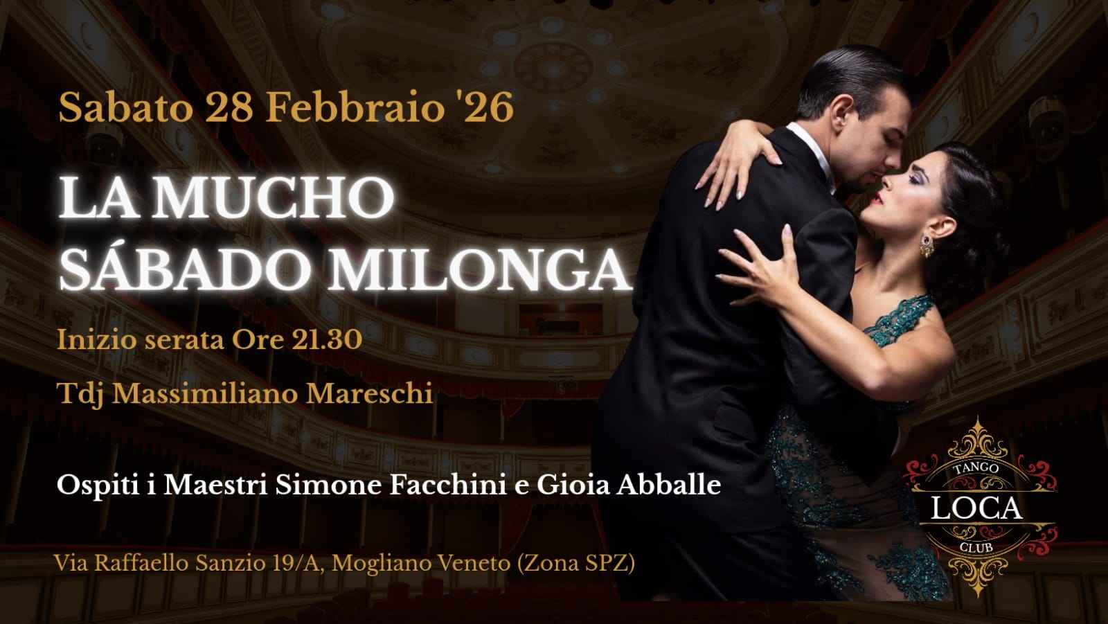 Milonga Mucho Sabado - Loca Tango Club - Ospiti i Maestri Simone Facchini e Gioia Abballe