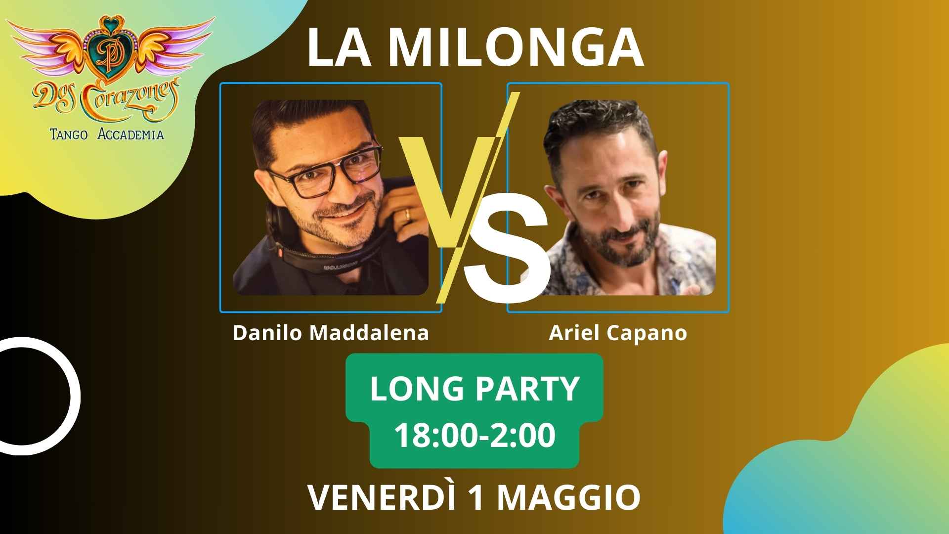 SPECIAL Tjs Danilo Maddalena Vs Ariel Capano!ore 18:00 Milonga con la grande musica di Buenos Aires!ore 20:00 La nostra Pizza!fine Milonga ore 2:00