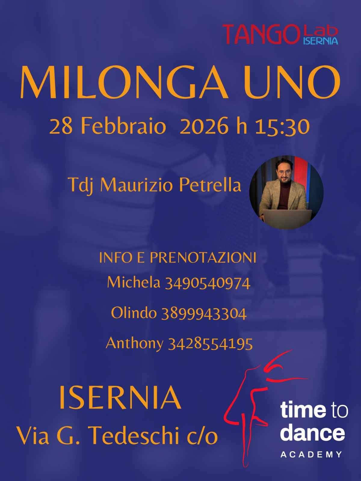 Quanta strada deve fare il tango per trovare onestà e amore? a Isernia vi invitiamo alla Milonga Uno, la Milonga dove si celebra il Tango, dove si balla per il gusto di ballare, per la gioia di ballare, per l’amore di ballare.