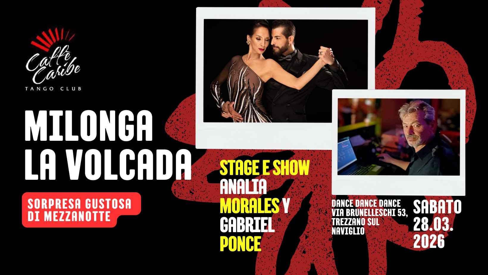 SABATO 28 Marzo 2026 torna la Milonga La Volcada nella sua nuova bellissima location, con una pista in legno naturale di 300 mq.