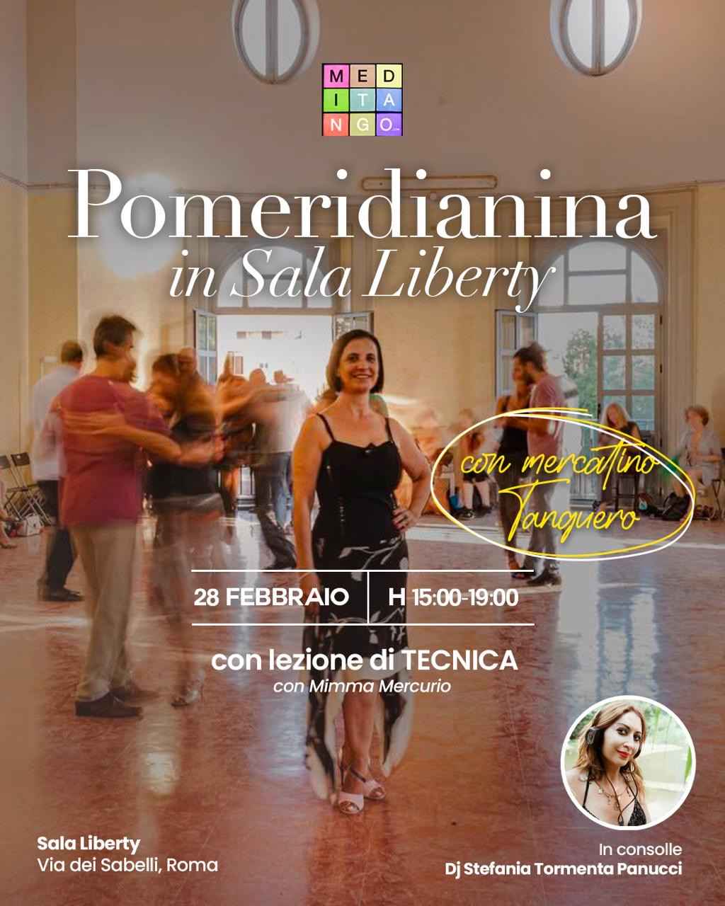 ✨ Il sabato pomeriggio è tango, per studiare, ballare, stare in compagnia.nella luce della Sala Liberty, a San Lorenzo (vivace quartiere della Roma studentesca).🕒 15:00 – 16:00lezione di Tecnica con Mimma Mercurio🎶 16:00 – 19:00selezioni musicali di Stefania Tormenta Panucci.💶 €15lezione + caffè e biscotti📍 Sala Libertyvia dei Sabelli 88c – Roma(cavalieri di Colombo)