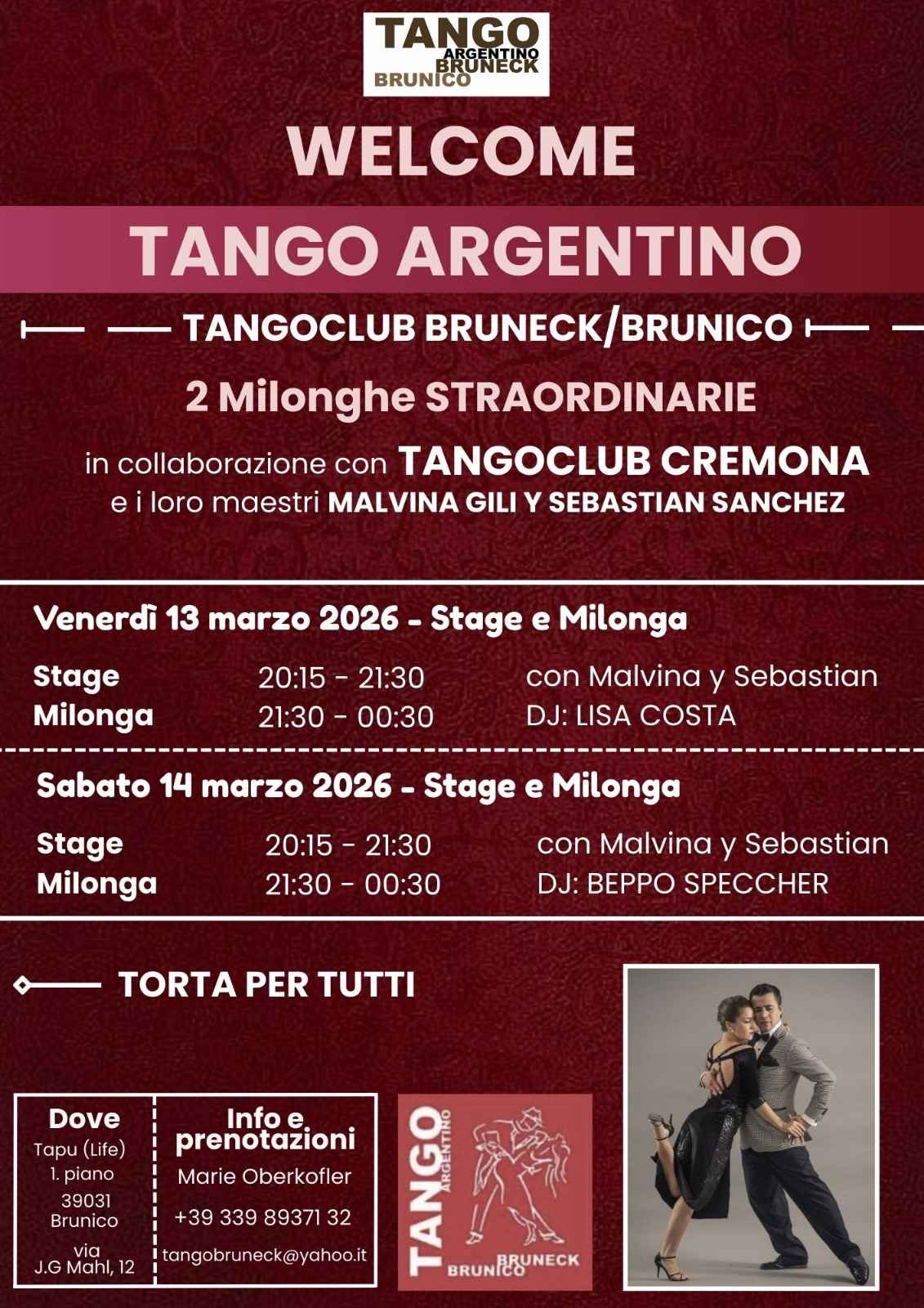 In collaborazione con Tango Club Cremona ed i loro Maestri Malvina Gili e Sebastian SANCHEZ.