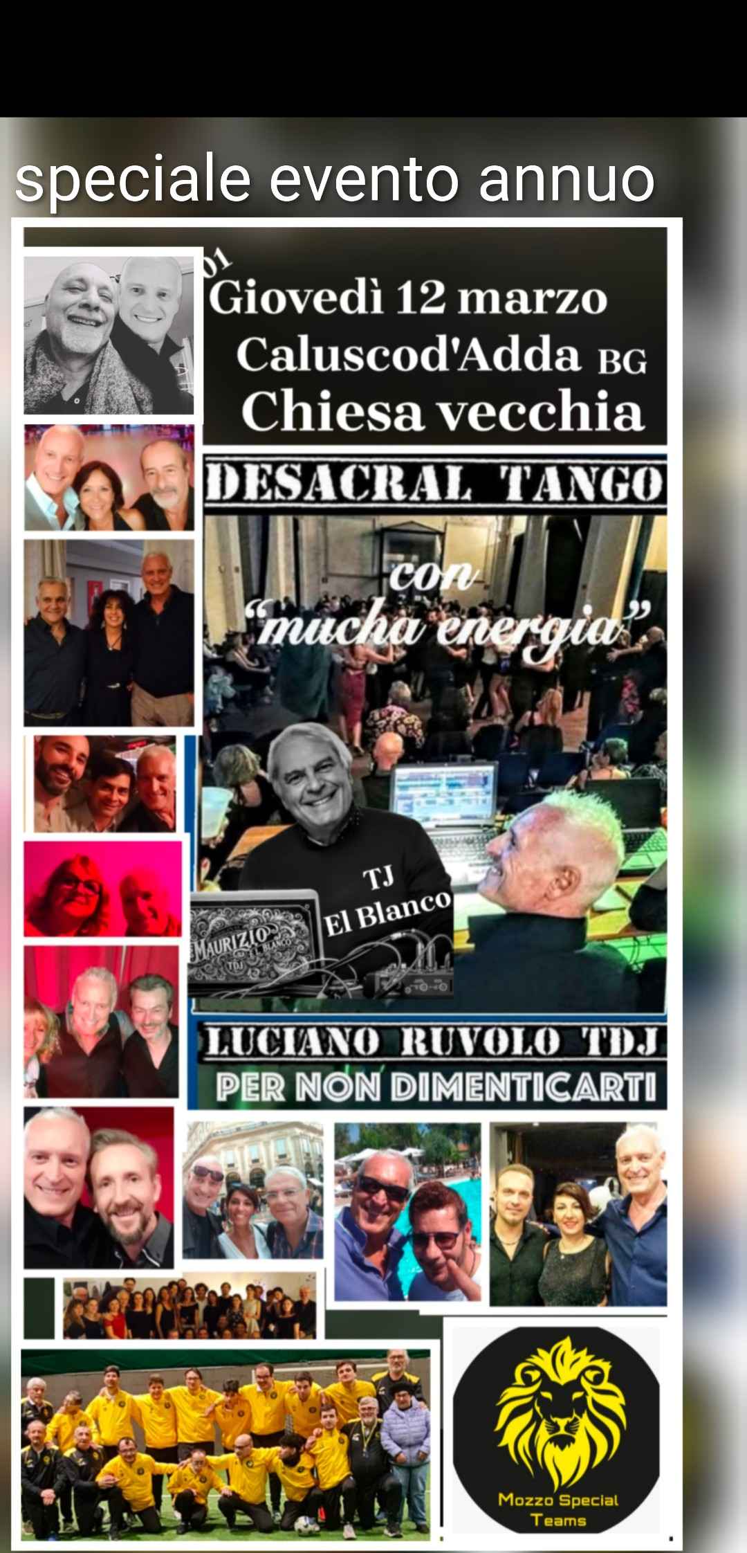 DesacralTango dedica una serata al suo ideatore Luciano Ruvolo                          " Per Non Dimenticarti" in occasione di questo speciale evento,direttamente dalla sua amata Sicilia arriverà a musicalizzareuno dei suoi migliori amici
