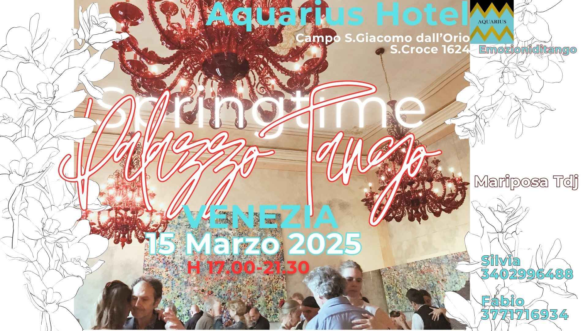 Immersi nei colori dei sontuosi lampadari di Murano, nei meravigliosi saloni dalla grazia veneziana e contagiati dall’energia delle opere d’arte di Palazzo Pemma-zambelli, ora magnifico Aquarius Hotel…palazzotango si intona al risveglio della Natura: ritmo, colore ed energia!