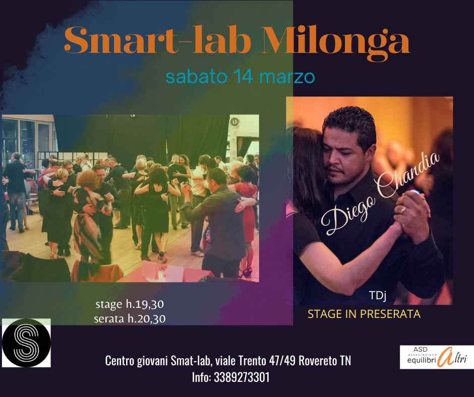 Siete invitati alla milonga mensile per una gran serata, stage in preserata e musica garantita con il maestro Diego Chandia!siamo in una bella e grande sala con pista in parquet per il ballo e posti a sedere per tutti gli ospiti, bar aperto per tutta la serata.